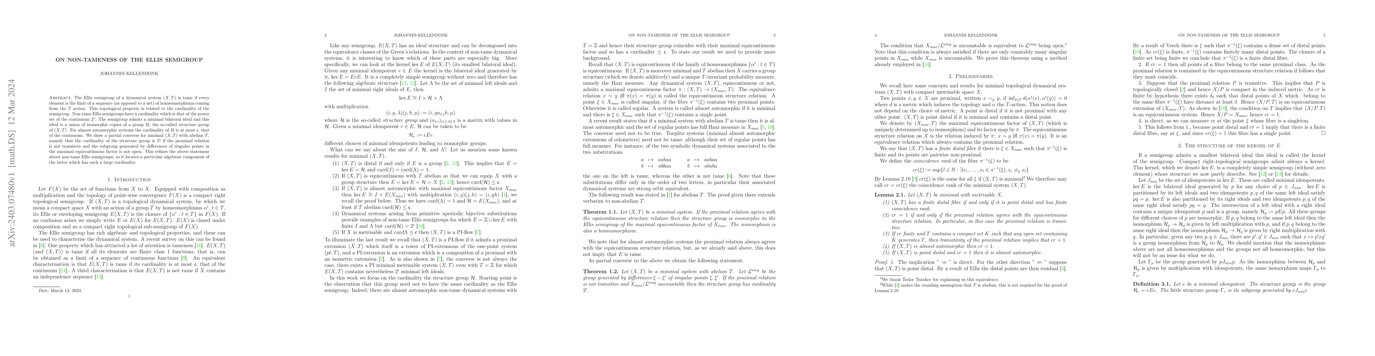 The paper explores non-tame Ellis semigroups in dynamical systems, revealing they have cardinality $2^{\mathfrak c}$ and include a minimal bilateral ideal comprising isomorphic copies of the structure group $\mathcal H$. For minimal systems with abelian dynamics, the structure group's cardinality is $2^{\mathfrak c}$ when the proximal relation is not transitive and certain subgroups in the maximal equicontinuous factor are not open.