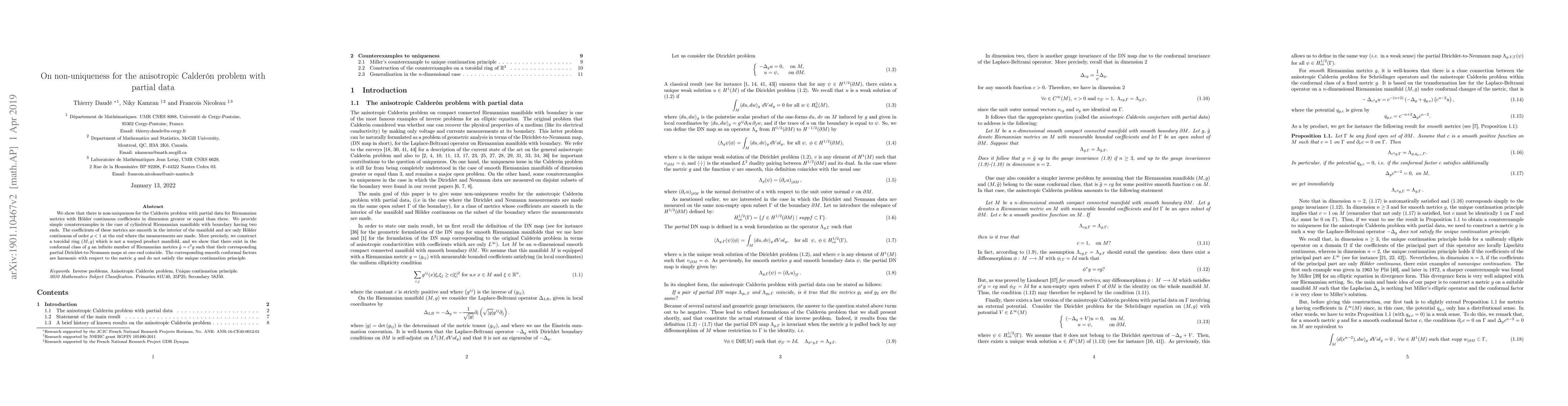 This paper demonstrates non-uniqueness in the anisotropic Calderón problem for Riemannian metrics with H{\"o}lder continuous coefficients in dimensions three or higher. It provides counterexamples on cylindrical Riemannian manifolds with two ends, showing infinite conformal metrics with coinciding partial Dirichlet-to-Neumann maps.