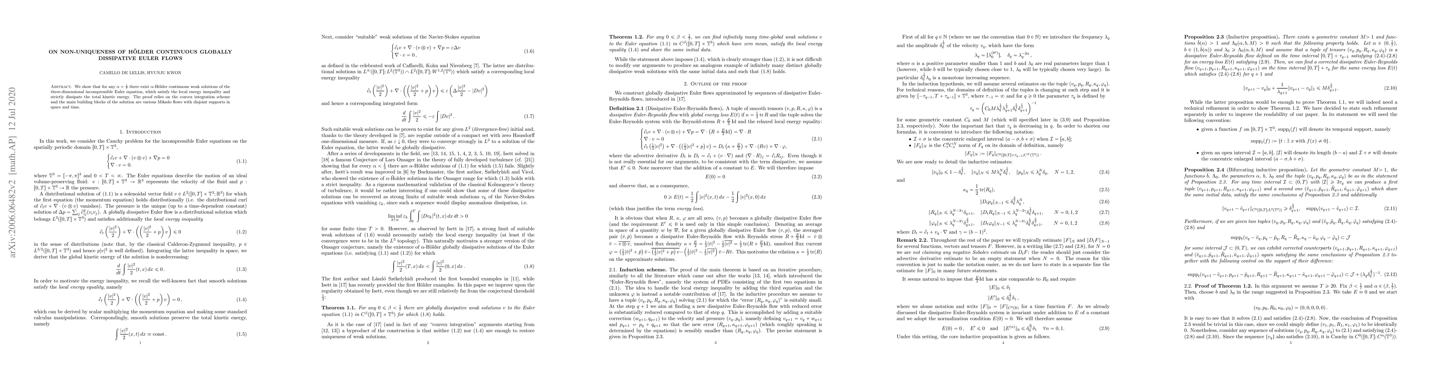 We show that for any $\al<\frac 17$ there exist $\al$-H\"older continuous weak solutions of the three-dimensional incompressible Euler equation, which satisfy the local energy inequality and strictly dissipate the total kinetic energy. The proof relies on the convex integration scheme and the main building blocks of the solution are various Mikado flows with disjoint supports in space and time.