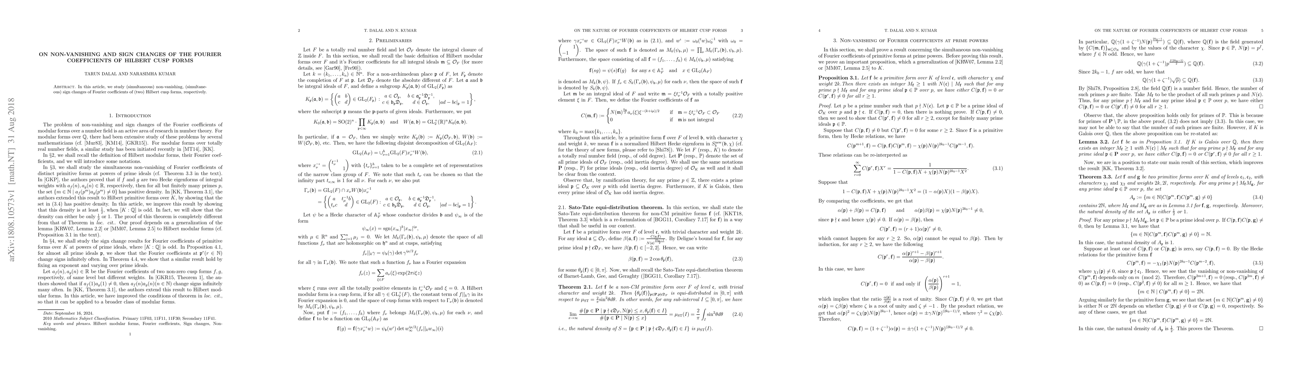 Summary: This paper investigates the non-vanishing and sign changes of Fourier coefficients for two Hilbert cusp forms, focusing on their simultaneous properties.