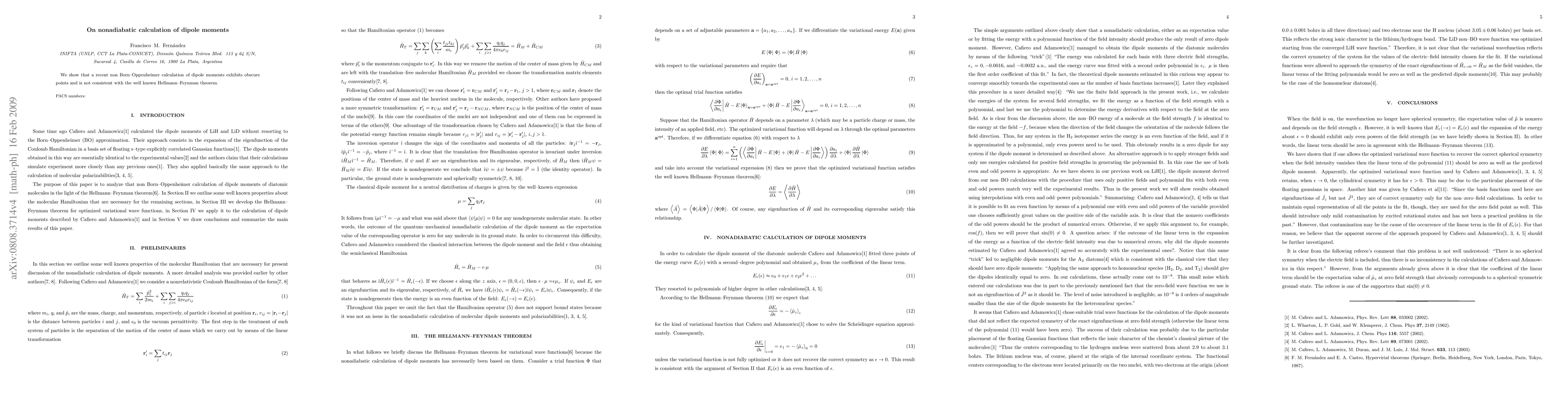 Summary: This paper critiques a recent nonadiabatic method for calculating dipole moments, highlighting inconsistencies with the Hellmann-Feynman theorem and identifying unclear aspects in its theoretical framework.