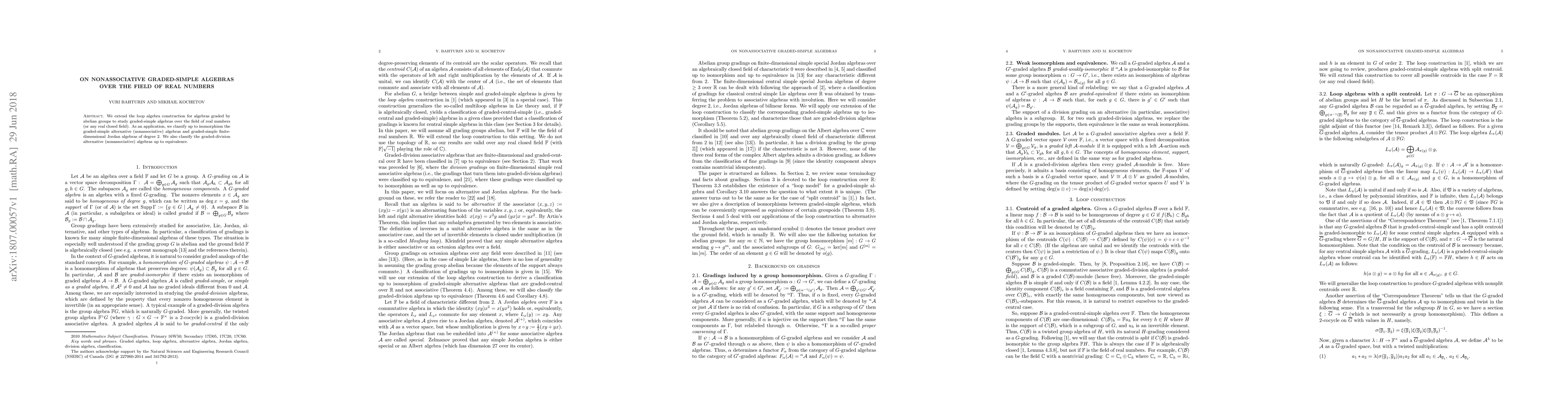 We extend the loop algebra construction for algebras graded by abelian groups to study graded-simple algebras over the field of real numbers (or any real closed field). As an application, we classify up to isomorphism the graded-simple alternative (nonassociative) algebras and graded-simple finite-dimensional Jordan algebras of degree 2. We also classify the graded-division alternative (nonassociative) algebras up to equivalence.