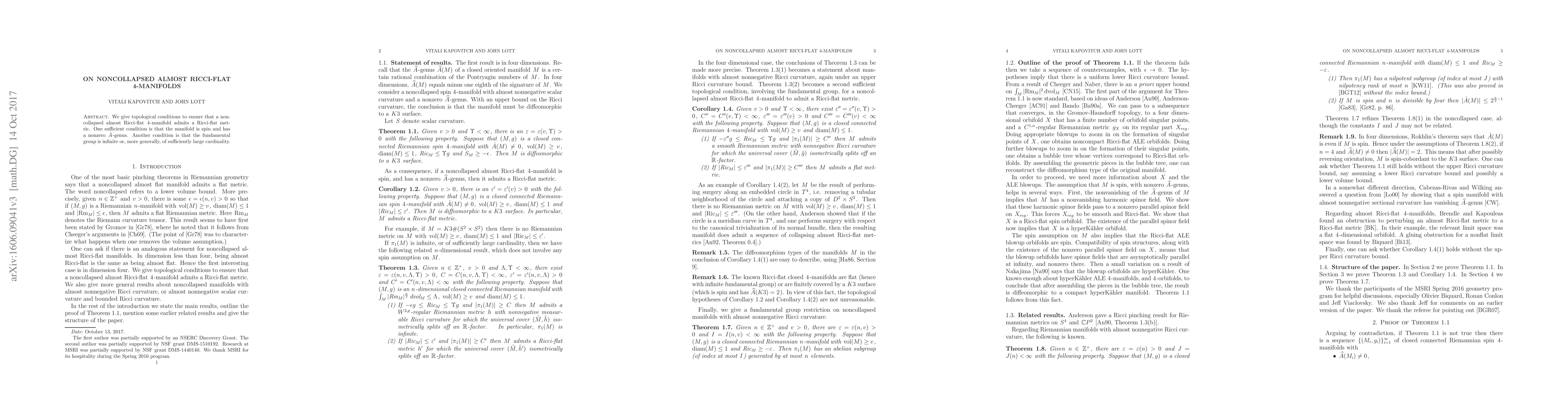 This paper provides topological conditions for noncollapsed almost Ricci-flat 4-manifolds to admit Ricci-flat metrics, including the requirements that the manifold be spin with a nonzero A-hat genus or have an infinite or sufficiently large cardinality fundamental group.