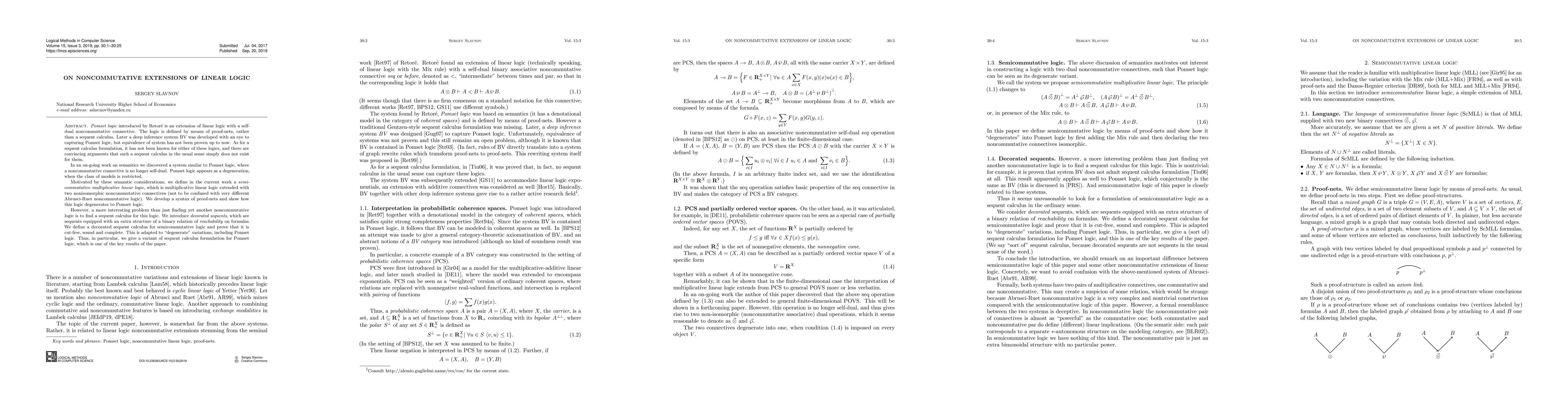 Pomset logic introduced by Retor\'e is an extension of linear logic with a self-dual noncommutative connective. The logic is defined by means of proof-nets, rather than a sequent calculus. Later a deep inference system BV was developed with an eye to capturing Pomset logic, but equivalence of system has not been proven up to now. As for a sequent calculus formulation, it has not been known for either of these logics, and there are convincing arguments that such a sequent calculus in the usual sense simply does not exist for them. In an on-going work on semantics we discovered a system similar to Pomset logic, where a noncommutative connective is no longer self-dual. Pomset logic appears as a degeneration, when the class of models is restricted. Motivated by these semantic considerations, we define in the current work a semicommutative multiplicative linear logic}, which is multiplicative linear logic extended with two nonisomorphic noncommutative connectives (not to be confused with very different Abrusci-Ruet noncommutative logic). We develop a syntax of proof-nets and show how this logic degenerates to Pomset logic. However, a more interesting problem than just finding yet another noncommutative logic is to find a sequent calculus for this logic. We introduce decorated sequents, which are sequents equipped with an extra structure of a binary relation of reachability on formulas. We define a decorated sequent calculus for semicommutative logic and prove that it is cut-free, sound and complete. This is adapted to "degenerate" variations, including Pomset logic. Thus, in particular, we give a variant of sequent calculus formulation for Pomset logic, which is one of the key results of the paper.