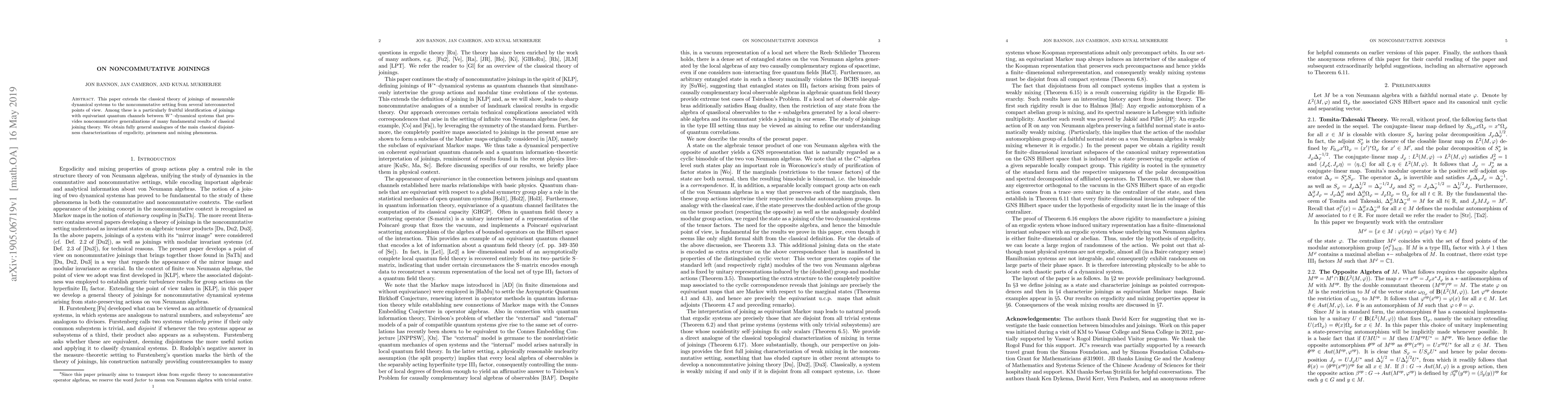 This paper generalizes classical joining theory to the noncommutative realm, identifying joinings with equivariant quantum channels, and establishes analogues of classical ergodicity, primeness, and mixing properties in the noncommutative setting.