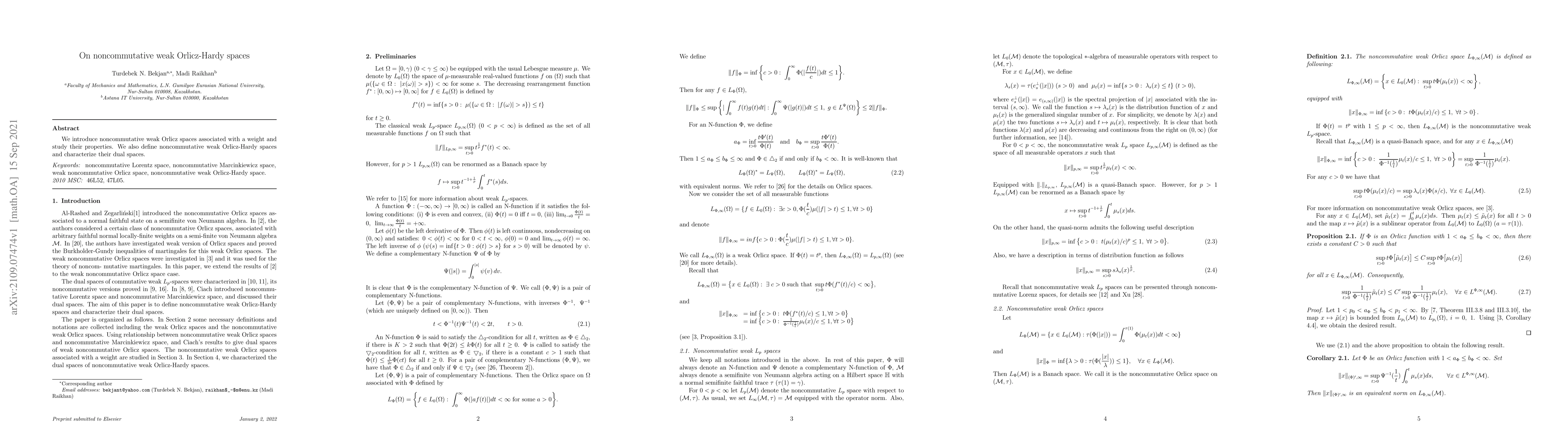 This paper introduces noncommutative weak Orlicz spaces linked to a weight and explores their properties. It also defines noncommutative weak Orlicz-Hardy spaces and provides a characterization of their dual spaces.