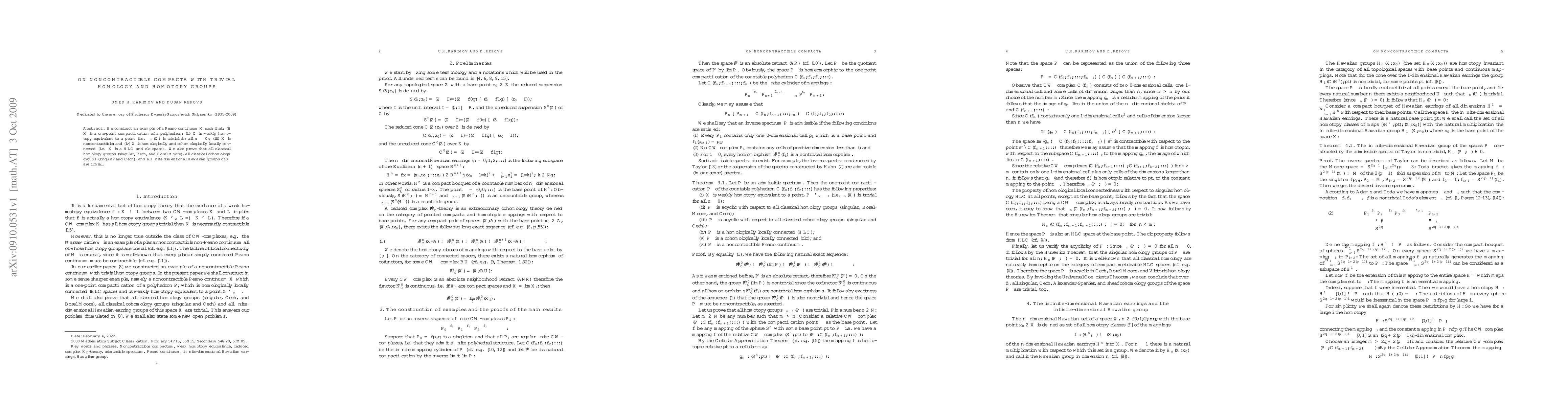 This paper constructs a Peano continuum $X$ that is a one-point compactification of a polyhedron, noncontractible yet weakly homotopy equivalent to a point, and trivial in all classical homology and cohomology groups, despite being a HLC and clc space. The authors demonstrate that $X$ exhibits unique topological properties that challenge conventional notions of contractibility and triviality.