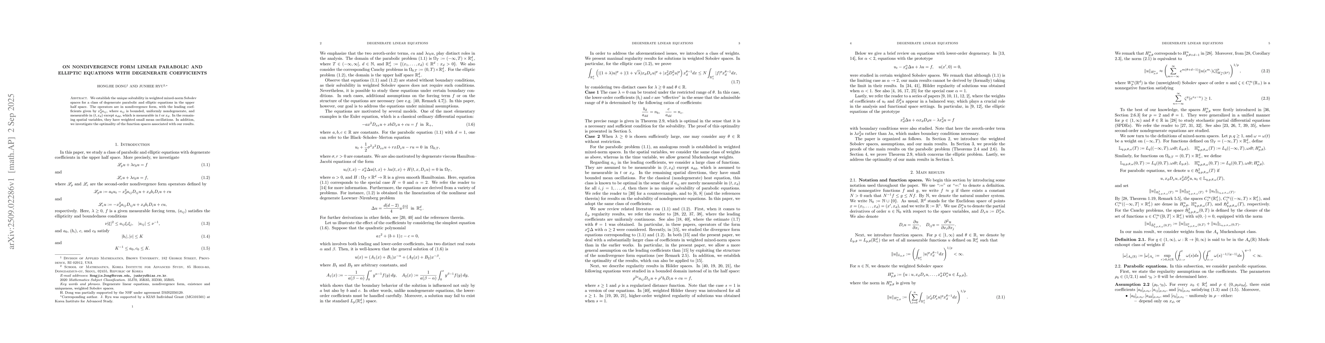 We establish the unique solvability in weighted mixed-norm Sobolev spaces for a class of degenerate parabolic and elliptic equations in the upper half space. The operators are in nondivergence form, with the leading coefficients given by $x_d^2a_{ij}$, where $a_{ij}$ is bounded, uniformly nondegenerate, and measurable in $(t,x_d)$ except $a_{dd}$, which is measurable in $t$ or $x_d$. In the remaining spatial variables, they have weighted small mean oscillations. In addition, we investigate the optimality of the function spaces associated with our results.