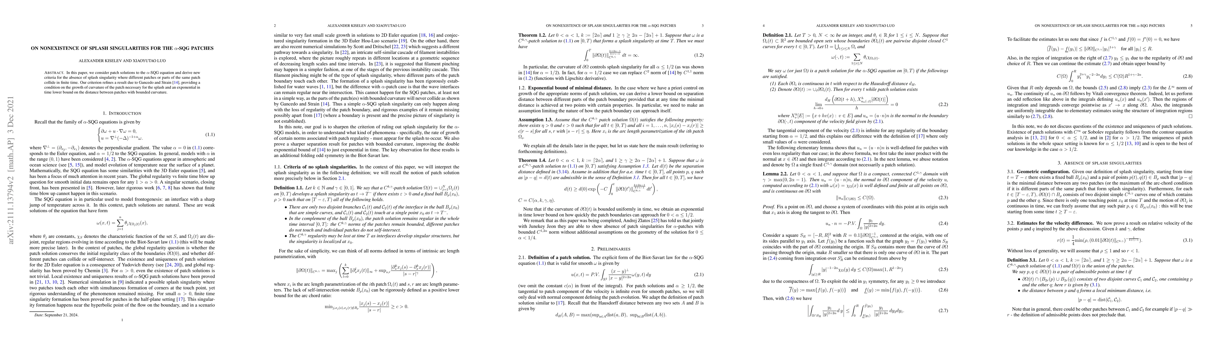 In this paper, we consider patch solutions to the $\alpha$-SQG equation and derive new criteria for the absence of splash singularity where different patches or parts of the same patch collide in finite time. Our criterion refines a result due to Gancedo and Strain \cite{GS}, providing a condition on the growth of curvature of the patch necessary for the splash and an exponential in time lower bound on the distance between patches with bounded curvature.