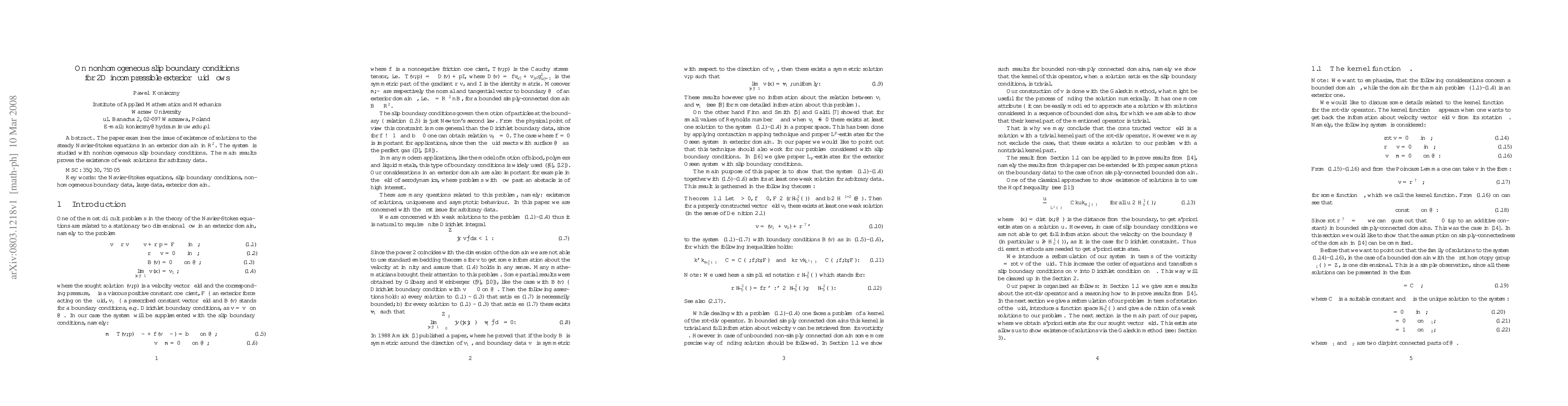 The paper examines the issue of existence of solutions to the steady Navier-Stokes equations in an exterior domain in $\mathbb{R}^2$. The system is studied with nonhomogeneous slip boundary conditions. The main results proves the existence of weak solutions for arbitrary data.