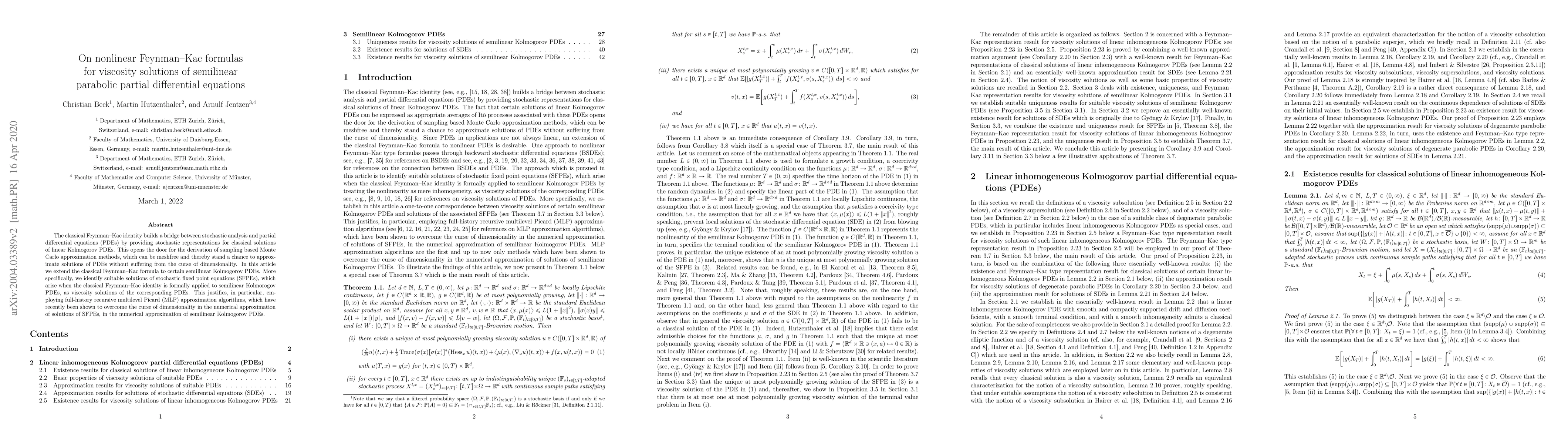 This paper extends the Feynman-Kac formula to semilinear Kolmogorov PDEs, identifying stochastic fixed point equation solutions as viscosity solutions. It justifies using advanced Monte Carlo methods to numerically approximate these PDEs, overcoming the curse of dimensionality.