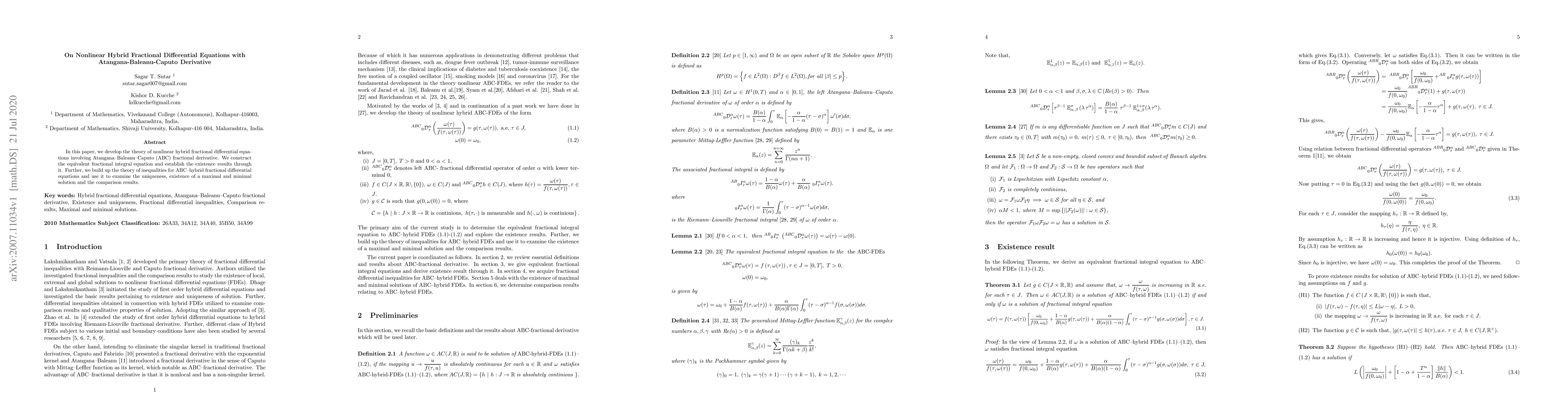 This paper develops the theory of nonlinear hybrid fractional differential equations using the Atangana-Baleanu-Caputo (ABC) fractional derivative, constructs equivalent fractional integral equations, and establishes existence results. It also explores inequalities for ABC-hybrid equations to examine uniqueness, maximal and minimal solutions, and comparison results.
