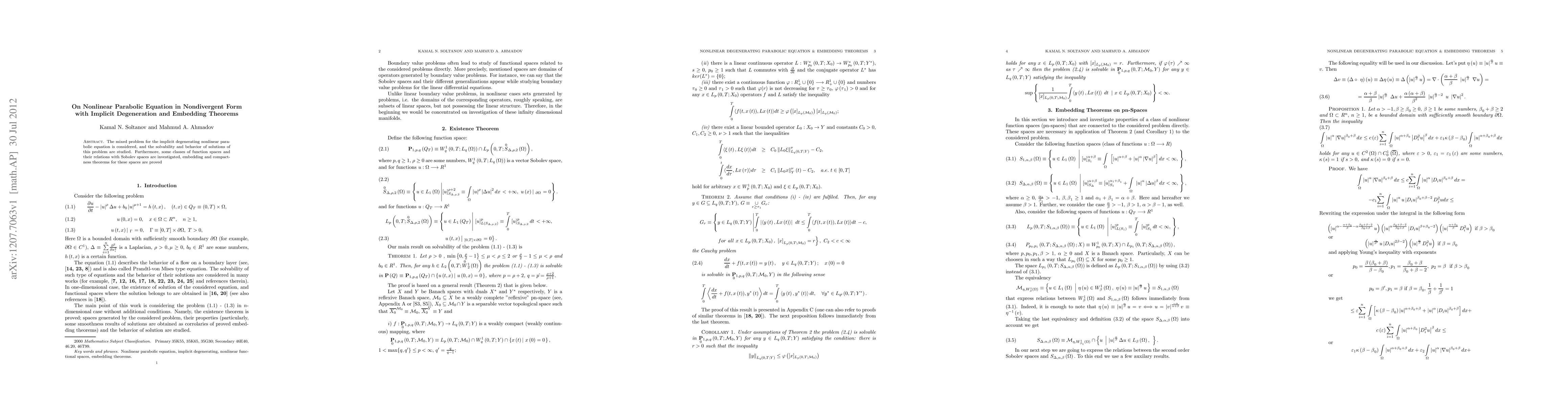 This research paper investigates the solvability and behavior of solutions to a nonlinear parabolic equation with implicit degeneration, as well as embedding and compactness theorems for related function spaces.