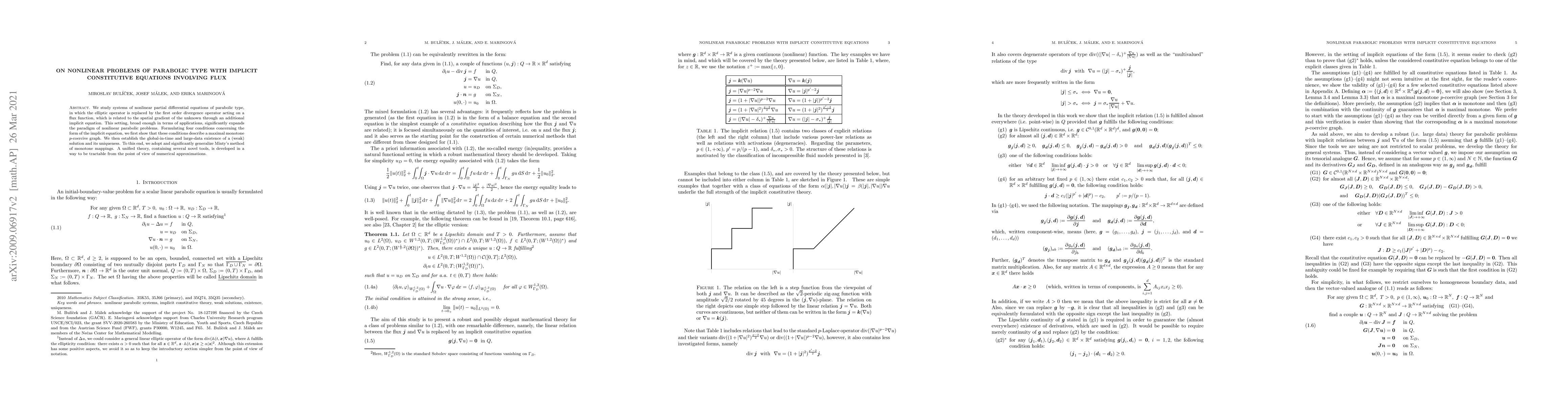 We study systems of nonlinear partial differential equations of parabolic type, in which the elliptic operator is replaced by the first order divergence operator acting on a flux function, which is related to the spatial gradient of the unknown through an additional implicit equation. This setting, broad enough in terms of applications, significantly expands the paradigm of nonlinear parabolic problems. Formulating four conditions concerning the form of the implicit equation, we first show that these conditions describe a maximal monotone $p$-coercive graph. We then establish the global-in-time and large-data existence of (weak) solution and its uniqueness. Towards this goal, we adopt and significantly generalize the Minty method of monotone mappings. A unified theory, containing several novel tools, is developed in a way to be tractable numerically.