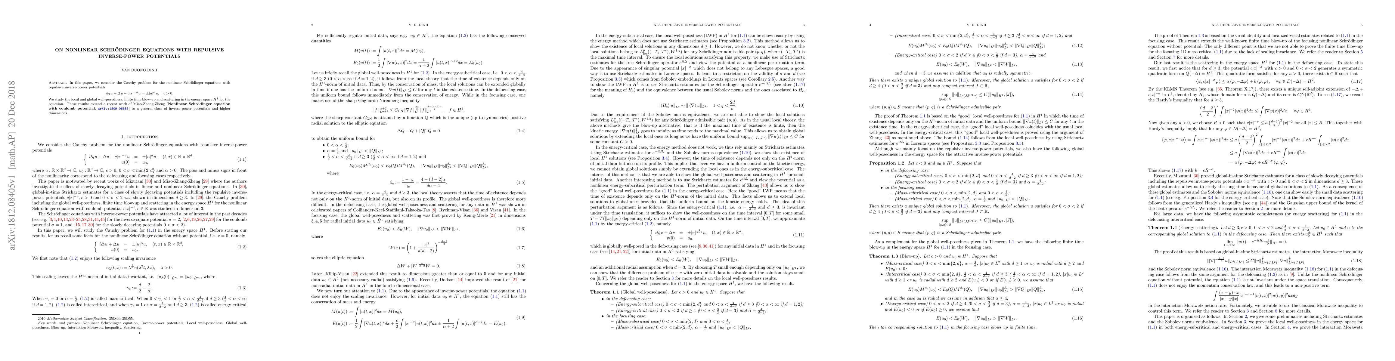 This paper investigates the Cauchy problem for nonlinear Schrödinger equations featuring repulsive inverse-power potentials, focusing on local and global well-posedness, finite time blow-up, and scattering in the energy space $H^1$. It extends previous results for Coulomb potentials to a broader class of inverse-power potentials in higher dimensions.