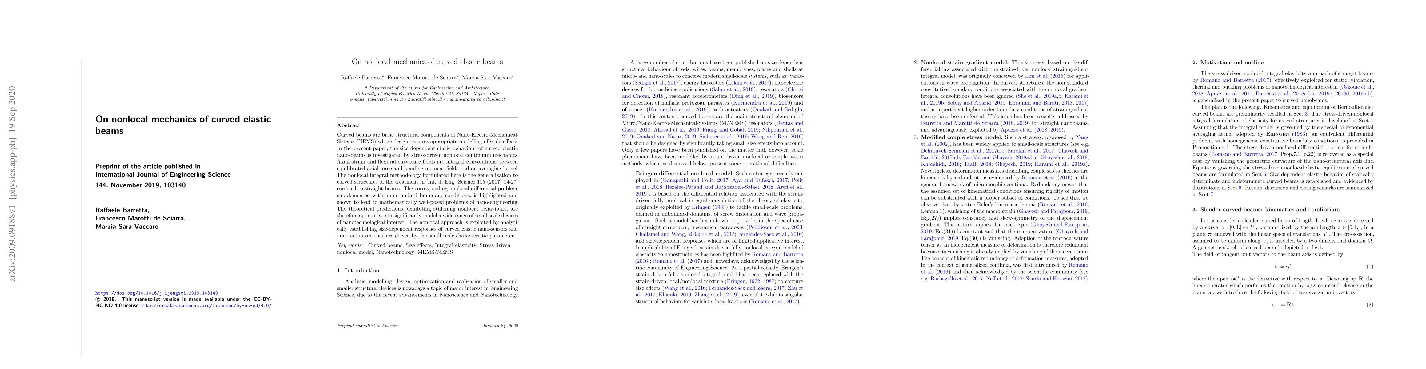 Curved beams are basic structural components of Nano-Electro-Mechanical-Sistems (NEMS) whose design requires appropriate modelling of scale effects. In the present paper, the size-dependent static behaviour of curved elastic nano-beams is investigated by stress-driven nonlocal continuum mechanics. Axial strain and flexural curvature fields are integral convolutions between equilibrated axial force and bending moment fields and an averaging kernel. The nonlocal integral methodology formulated here is the generalization to curved structures of the treatment in [Int. J. Eng. Science 115 (2017) 14-27] confined to straight beams. The corresponding nonlocal differential problem, supplemented with non-standard boundary conditions, is highlighted and shown to lead to mathematically well-posed problems of nano-engineering. The theoretical predictions, exhibiting stiffening nonlocal behaviours, are therefore appropriate to significantly model a wide range of small-scale devices of nanotechnological interest. The nonlocal approach is exploited by analytically establishing size-dependent responses of curved elastic nano-sensors and nano-actuators that are driven by the small-scale characteristic parameter.