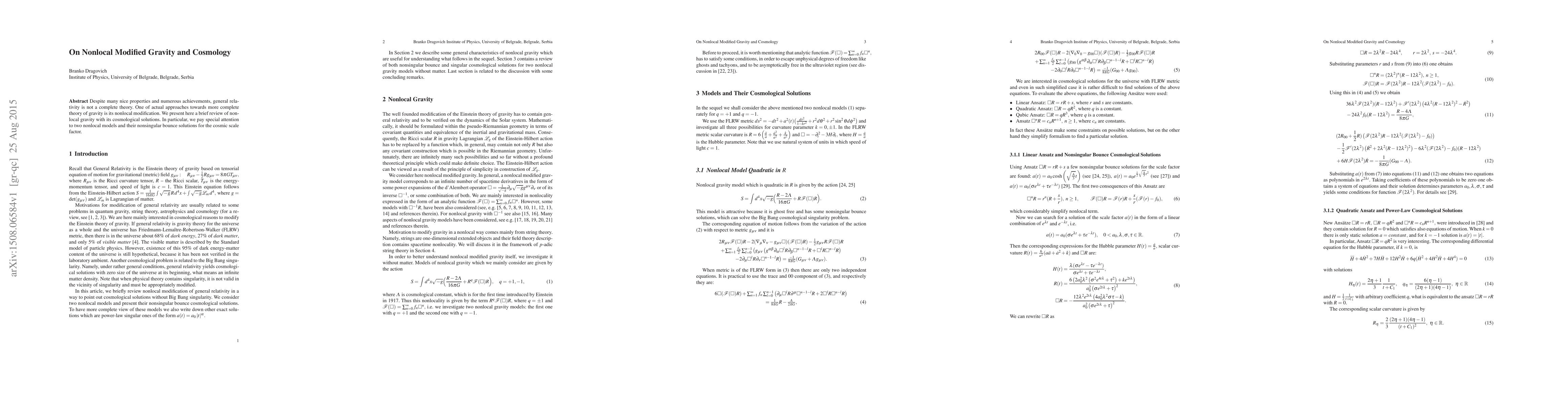 This paper reviews nonlocal modifications of gravity and their cosmological implications, focusing on two specific models that provide nonsingular bounce solutions for the cosmic scale factor, suggesting potential alternatives to general relativity.