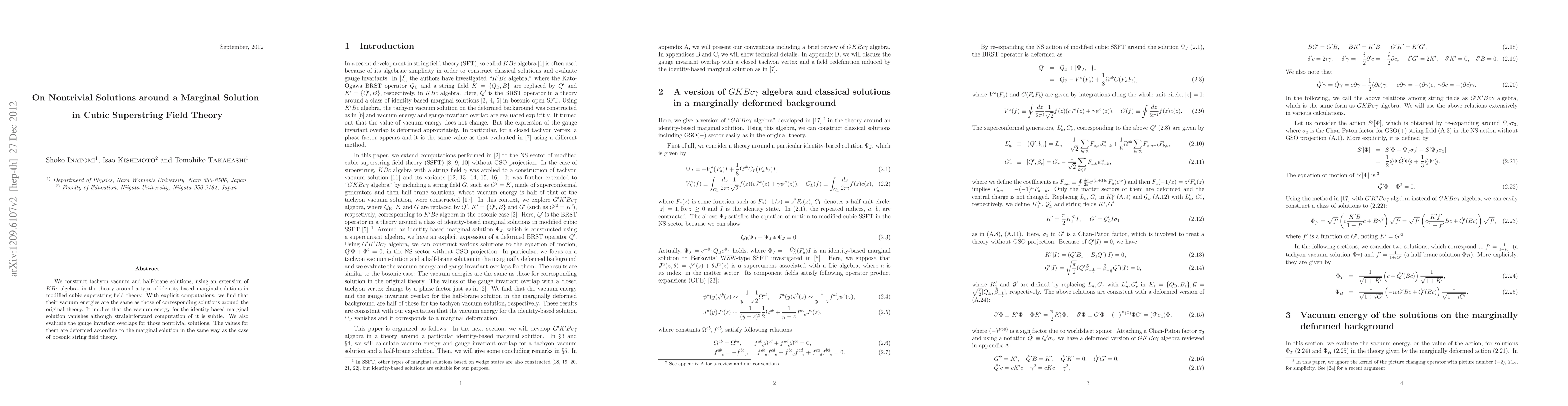 This paper constructs nontrivial solutions in modified cubic superstring field theory around identity-based marginal solutions, revealing that their vacuum energies match those of the original theory, implying a vanishing vacuum energy for the marginal solution. It also evaluates gauge invariant overlaps, showing deformation consistent with bosonic string field theory.