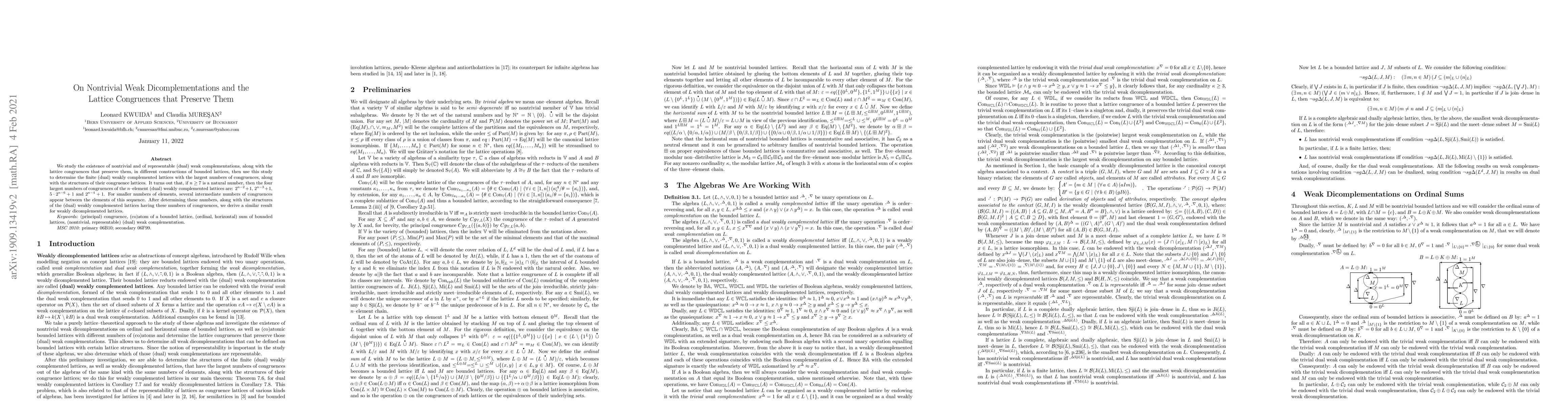 This paper investigates nontrivial weak dicomplementations in bounded lattices, finding that for n=7, the four largest numbers of congruences in n-element dual weakly complemented lattices are $2^{n-2}+1$, $2^{n-3}+1$, $5 ext{ imes } 2^{n-6}+1$ and $2^{n-4}+1$.