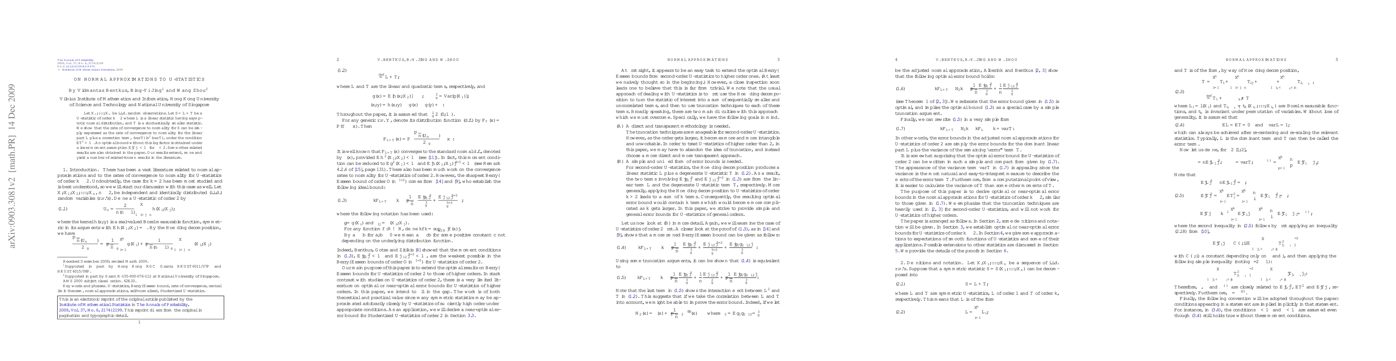 Let ${X_1,...,X_n}$ be i.i.d. random observations. Let $\mathbb{S}=\mathbb{L}+\mathbb{T}$ be a $U$-statistic of order $k\ge2$ where $\mathbb{L}$ is a linear statistic having asymptotic normal distribution, and $\mathbb{T}$ is a stochastically smaller statistic. We show that the rate of convergence to normality for $\mathbb{S}$ can be simply expressed as the rate of convergence to normality for the linear part $\mathbb{L}$ plus a correction term, $(\operatorname {var}\mathbb{T})\ln^2(\operatorname {var}\mathbb{T})$, under the condition ${\mathbb{E}\mathbb{T}^2<\infty}$. An optimal bound without this $\log$ factor is obtained under a lower moment assumption ${\mathbb {E}|\mathbb{T}|^{\alpha}<\infty}$ for ${\alpha<2}$. Some other related results are also obtained in the paper. Our results extend, refine and yield a number of related-known results in the literature.