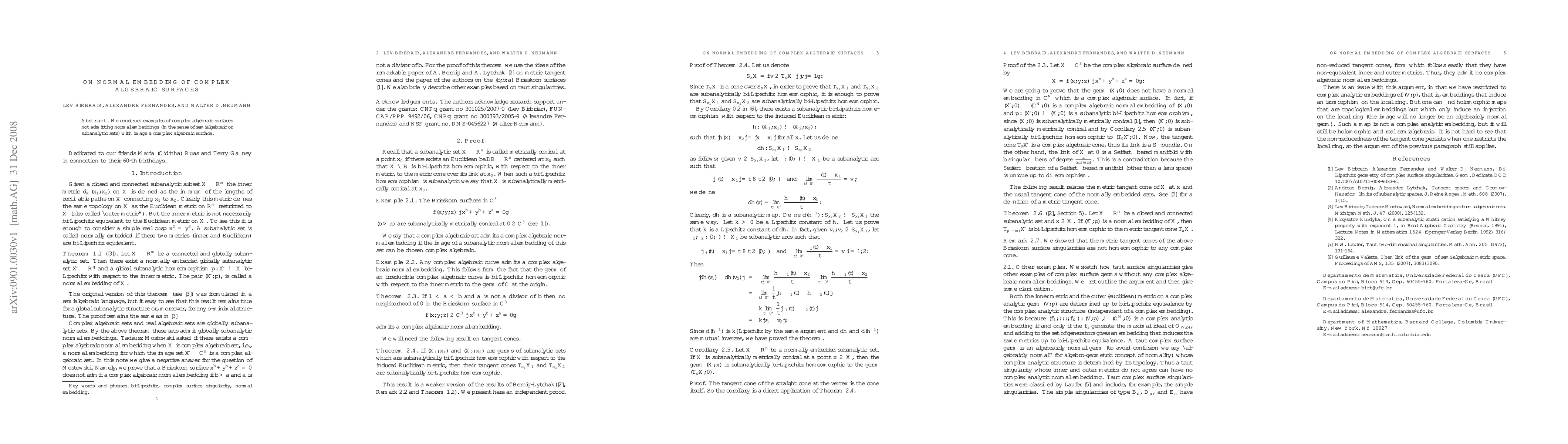 We construct examples of complex algebraic surfaces not admitting normal embeddings (in the sense of semialgebraic or subanalytic sets) with image a complex algebraic surface.