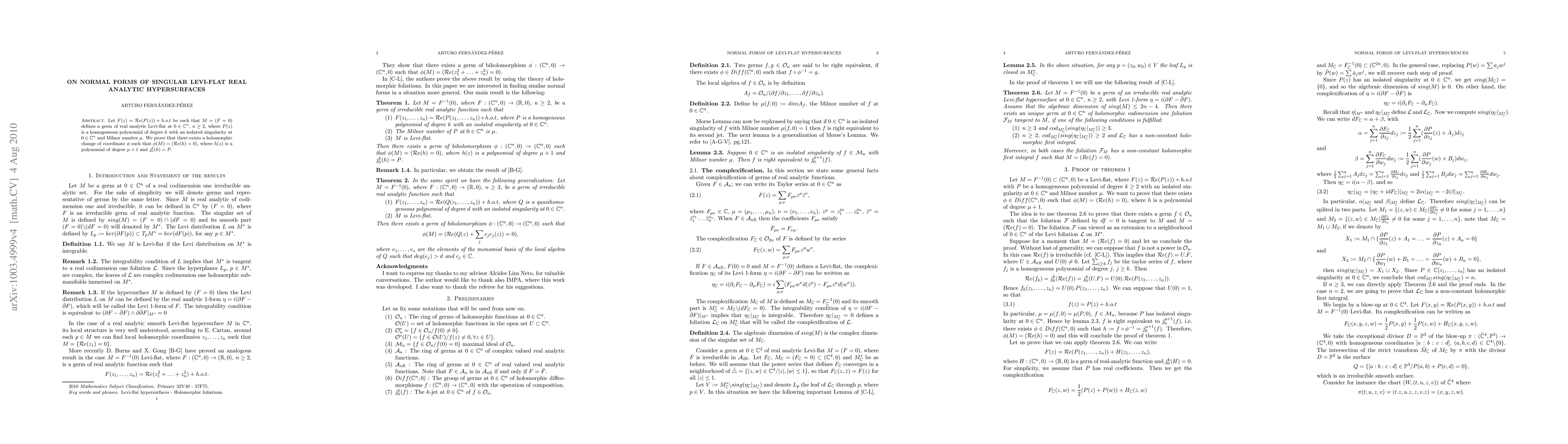 This paper establishes the existence of a holomorphic coordinate transformation that brings a singular Levi-flat real analytic hypersurface, defined by $F(z) = \mathcal{R}e(P(z)) + h.o.t$, to a normal form where $\phi(M) = (\mathcal{R}e(h)=0)$, with $h(z)$ a polynomial of degree $\mu+1$.