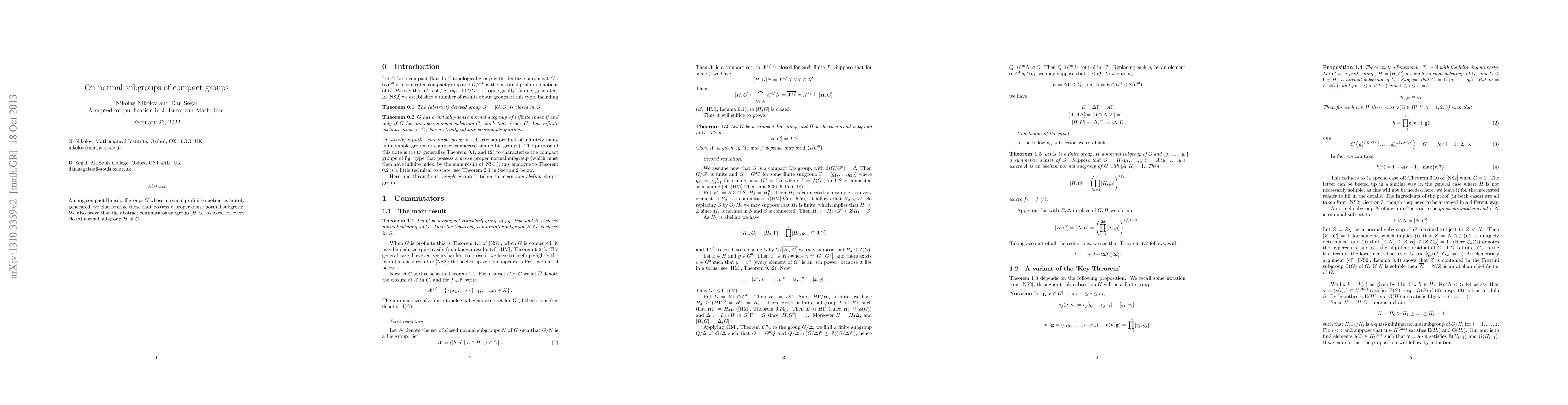 Among compact Hausdorff groups G whose maximal profinite quotient is finitely generated, we characterize those that possess a proper dense normal subgroup. We also prove that the abstract commutator subgroup [H,G] is closed for every closed normal subgroup H of G.