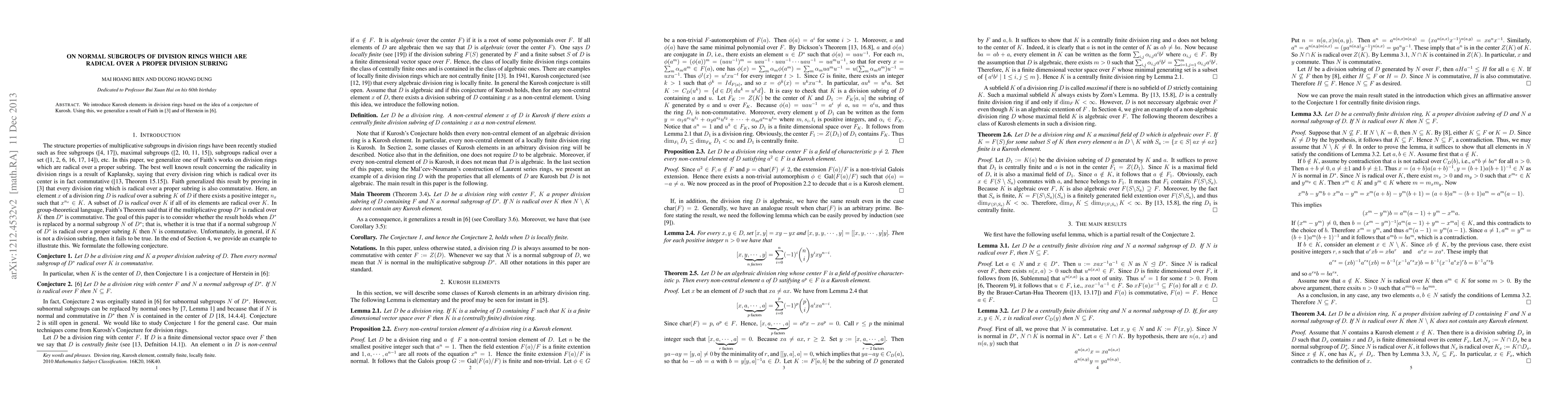 This paper introduces Kurosh elements in division rings to generalize a result about normal subgroups, providing new insights into radical subrings.