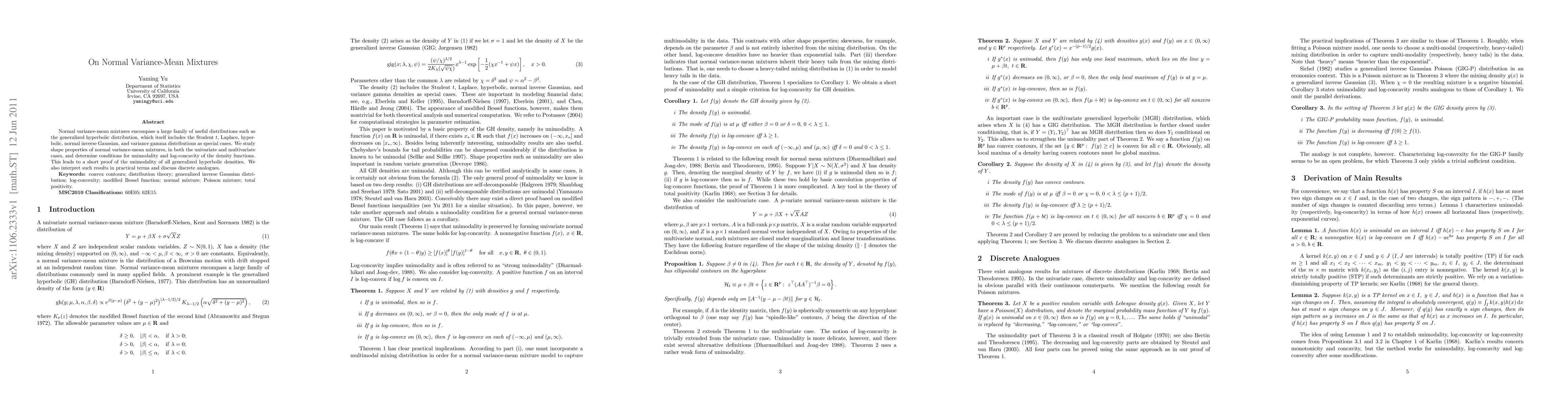 This paper investigates the shape properties of normal variance-mean mixtures, determining conditions for unimodality and log-concavity in both univariate and multivariate cases. It provides a concise proof of the unimodality of generalized hyperbolic densities and discusses practical implications and discrete analogues.