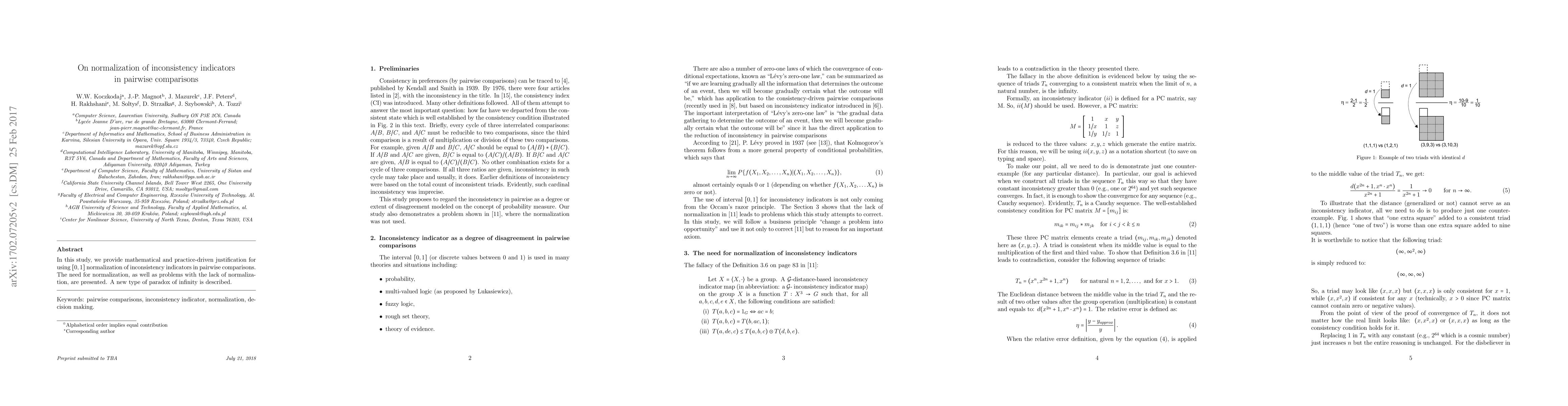 This paper justifies the $[0,1]$ normalization of inconsistency indicators in pairwise comparisons, addressing both theoretical and practical issues. It also introduces a new paradox of infinity related to the lack of normalization.