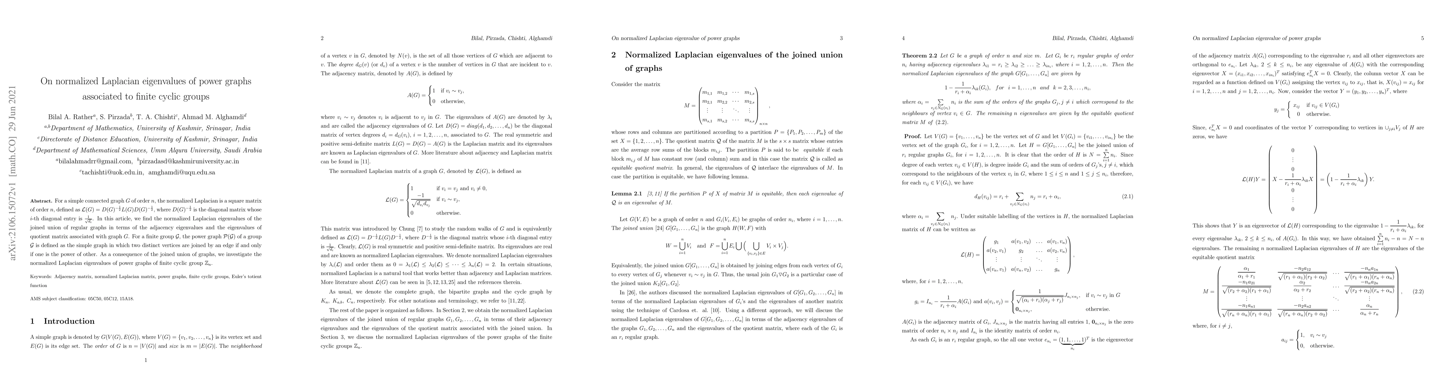 For a simple connected graph $ G $ of order $ n $, the normalized Laplacian is a square matrix of order $ n $, defined as $\mathcal{L}(G)= D(G)^{-\frac{1}{2}}L(G)D(G)^{-\frac{1}{2}}$, where $ D(G)^{-\frac{1}{2}} $ is the diagonal matrix whose $ i$-th diagonal entry is $ \frac{1}{\sqrt{d_{i}}} $. In this article, we find the normalized Laplacian eigenvalues of the joined union of regular graphs in terms of the adjacency eigenvalues and the eigenvalues of quotient matrix associated with graph $ G $. For a finite group $\mathcal{G}$, the power graph $\mathcal{P}(\mathcal{G})$ of a group $ \mathcal{G} $ is defined as the simple graph in which two distinct vertices are joined by an edge if and only if one is the power of other. As a consequence of the joined union of graphs, we investigate the normalized Laplacian eigenvalues of power graphs of finite cyclic group $ \mathbb{Z}_{n}. $