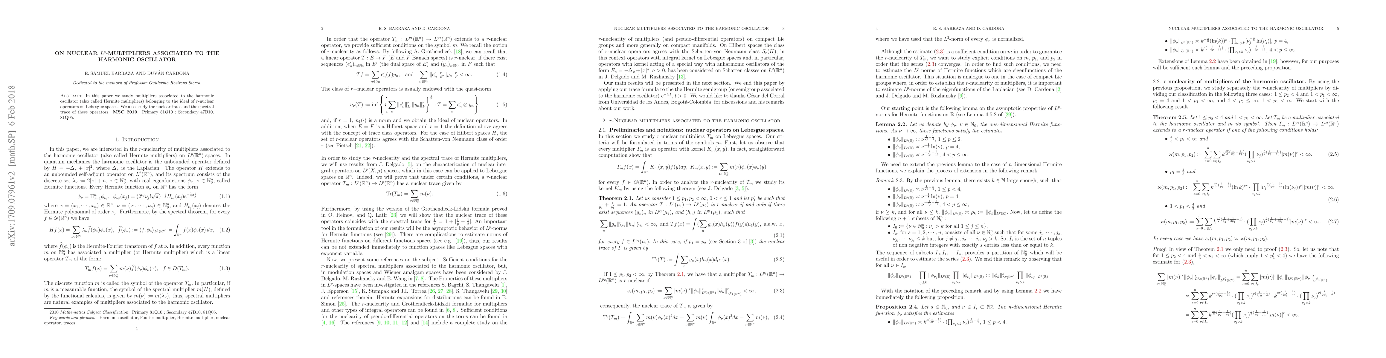 This paper investigates Hermite multipliers linked to the harmonic oscillator, classifying them as $r$-nuclear operators within $L^p$ spaces, and examines their nuclear trace and spectral trace properties.