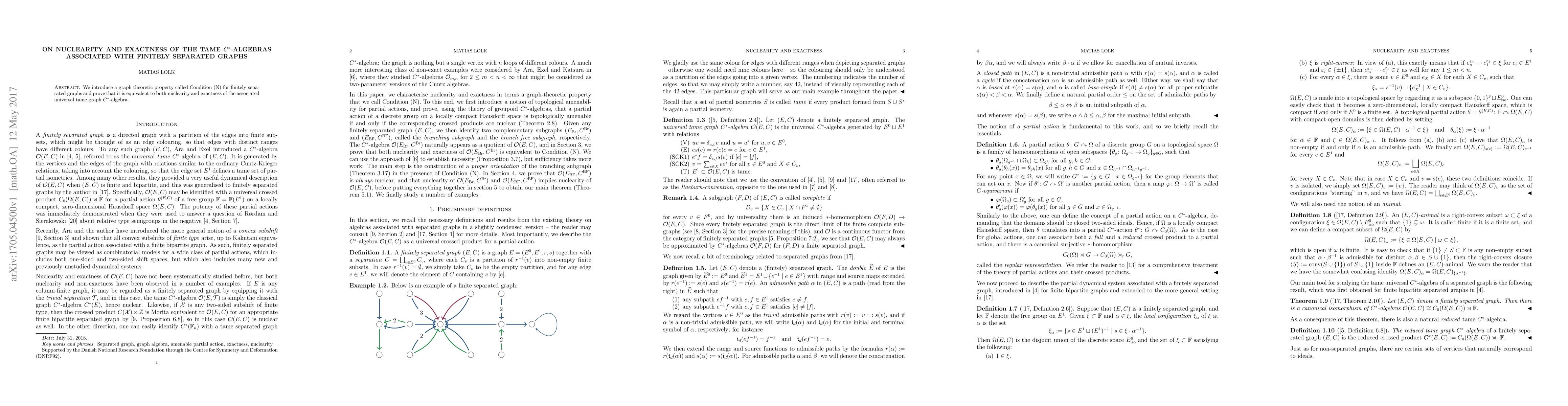 We introduce a graph theoretic property called Condition (N) for finitely separated graphs and prove that it is equivalent to both nuclearity and exactness of the associated universal tame graph C*-algebra.