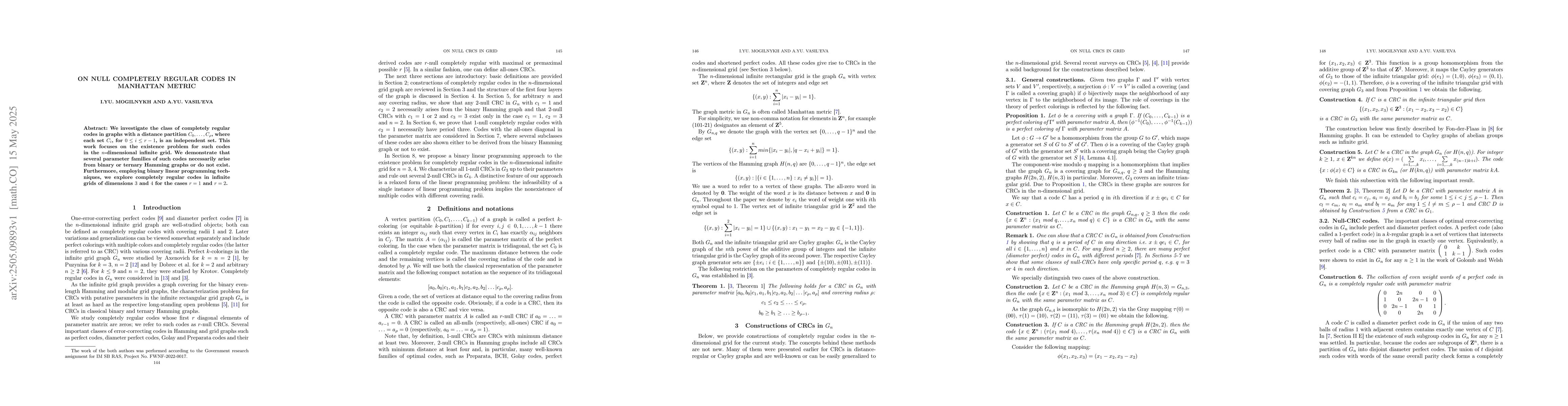 The application of binary linear programming techniques to analyze completely regular codes in infinite grids is a notable technical contribution.