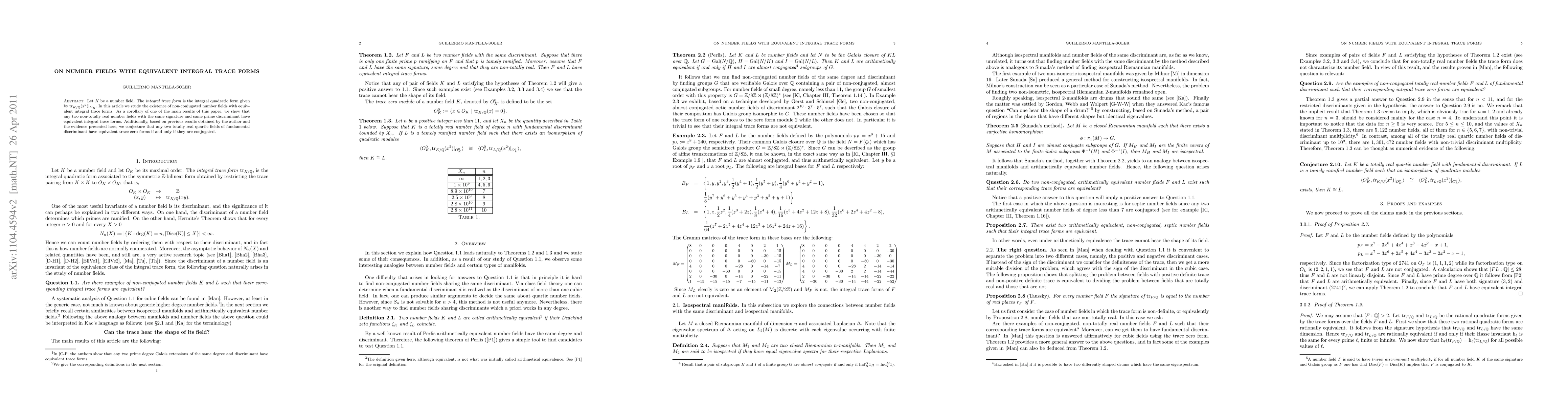 This paper investigates the equivalence of integral trace forms for non-conjugated number fields, proving that any two non-totally real number fields with the same signature and discriminant share equivalent integral trace forms. The authors also propose a conjecture regarding the equivalence of trace zero forms for totally real quartic fields.
