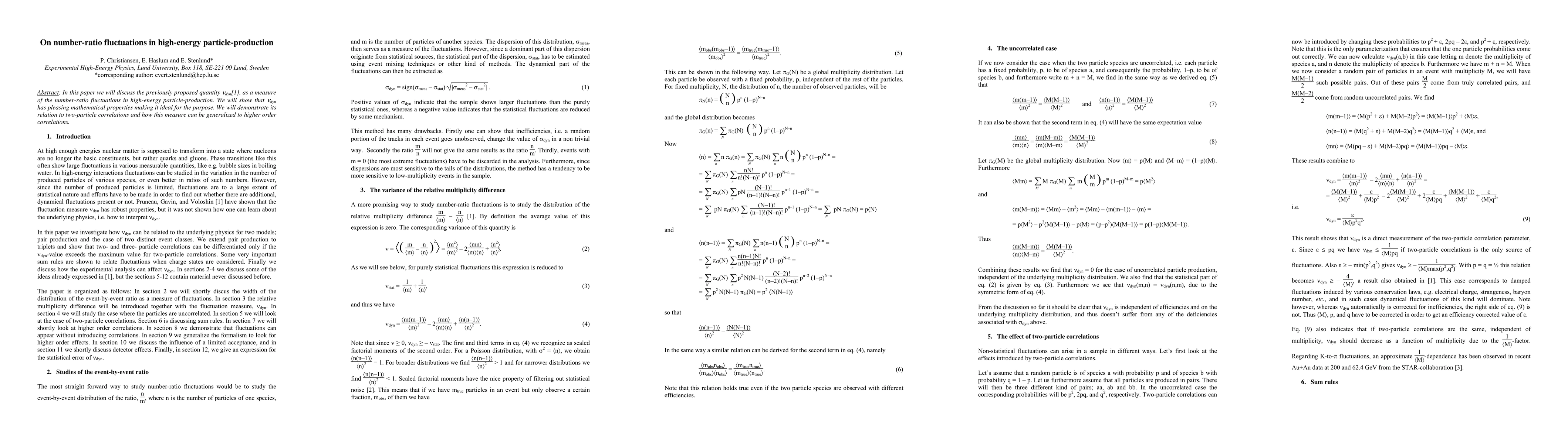 In this paper we will discuss the previously proposed quantity nu_dyn[1], as a measure of the number-ratio fluctuations in high-energy particle-production. We will show that nu_dyn has pleasing mathematical properties making it ideal for the purpose. We will demonstrate its relation to two-particle correlations and how this measure can be generalized to higher order correlations.
