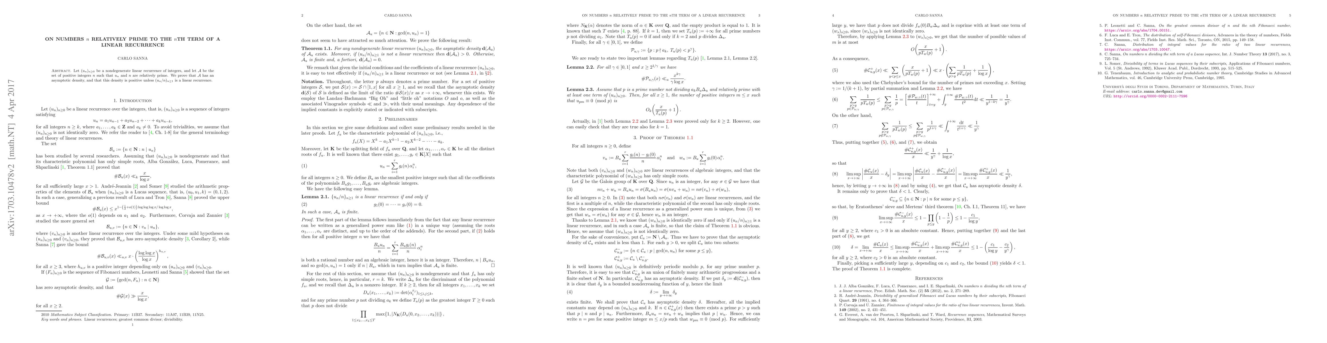 This paper proves that for a nondegenerate linear recurrence of integers $(u_n)$, the set $\mathcal{A}$ of integers $n$ that are relatively prime to $u_n$ has a positive asymptotic density, unless the sequence $(u_n / n)$ itself forms a linear recurrence.