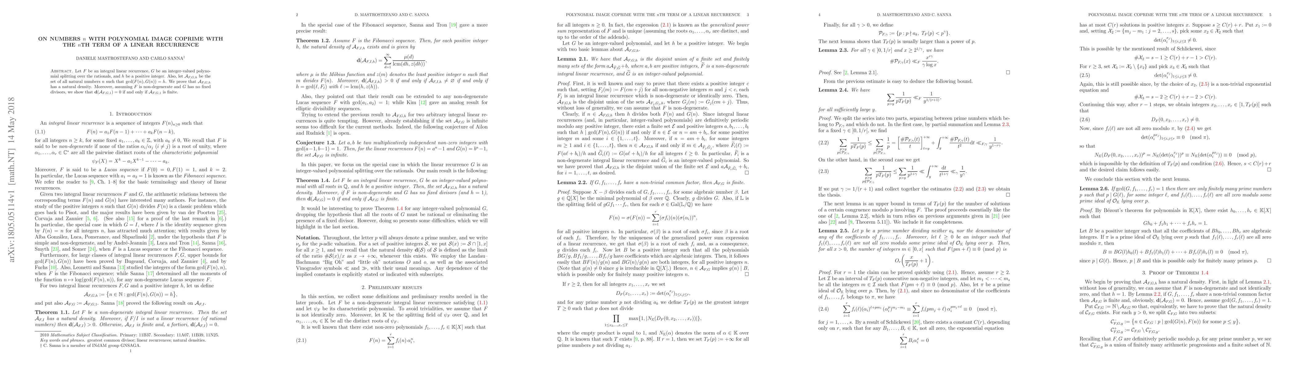 This paper investigates the natural density of natural numbers $n$ where the greatest common divisor of a linear recurrence $F(n)$ and a polynomial $G(n)$ equals a positive integer $h$. It proves that such sets $\mathcal{A}_{F,G,h}$ have a natural density, and under specific conditions, the density of $\mathcal{A}_{F,G,1}$ is zero if and only if this set is finite.