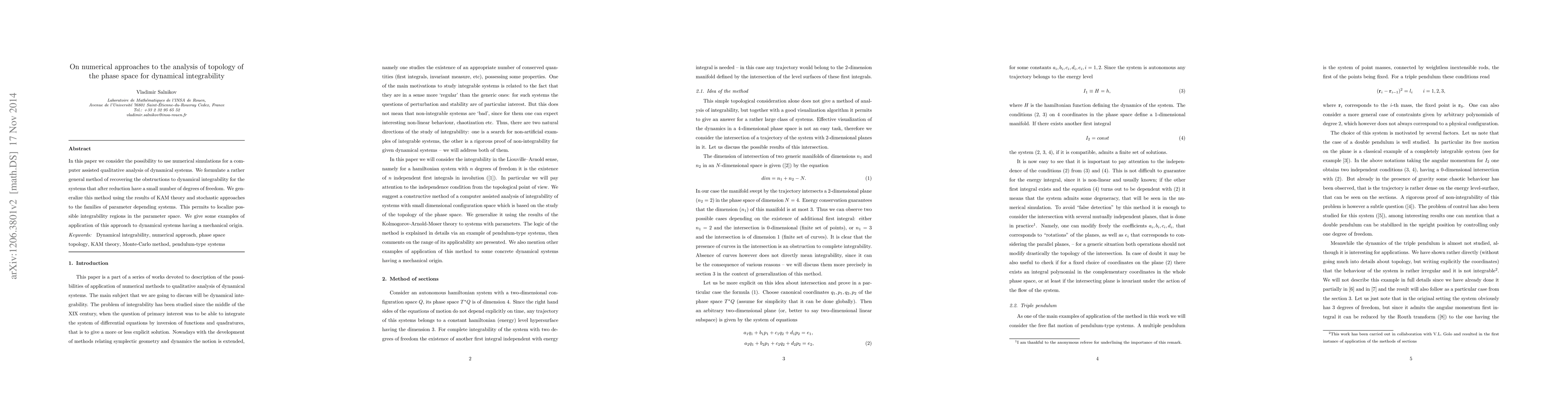 In this paper we consider the possibility to use numerical simulations for a computer assisted analysis of integrability of dynamical systems. We formulate a rather general method of recovering the obstruction to integrability for the systems with a small number of degrees of freedom. We generalize this method using the results of KAM theory and stochastic approaches to the families of parameter depending systems. This permits the localization of possible integrability regions in the parameter space. We give some examples of application of this approach to dynamical systems having mechanical origin.