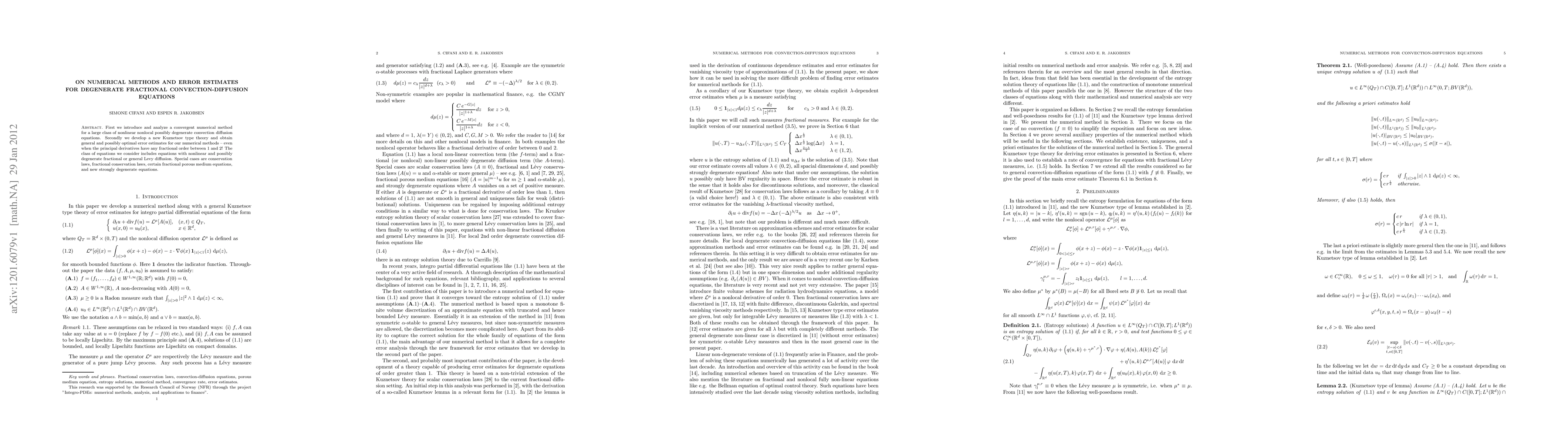 First we introduce and analyze a convergent numerical method for a large class of nonlinear nonlocal possibly degenerate convection diffusion equations. Secondly we develop a new Kuznetsov type theory and obtain general and possibly optimal error estimates for our numerical methods - even when the principal derivatives have any fractional order between 1 and 2! The class of equations we consider includes equations with nonlinear and possibly degenerate fractional or general Levy diffusion. Special cases are conservation laws, fractional conservation laws, certain fractional porous medium equations, and new strongly degenerate equations.