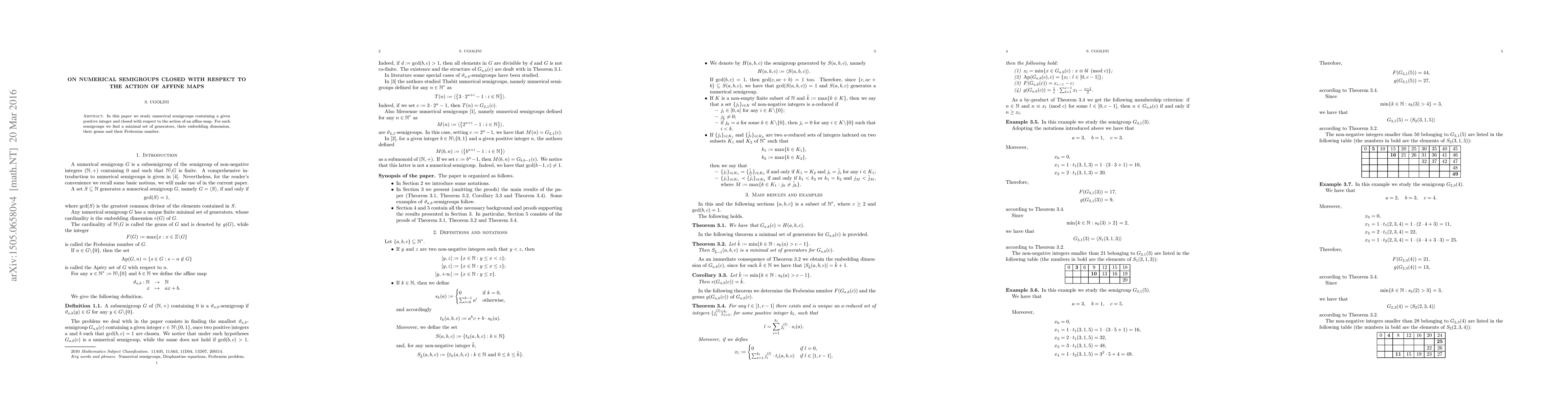 In this paper we study numerical semigroups containing a given positive integer and closed with respect to the action of an affine map. For such semigroups we find a minimal set of generators, their embedding dimension, their genus and their Frobenius number.