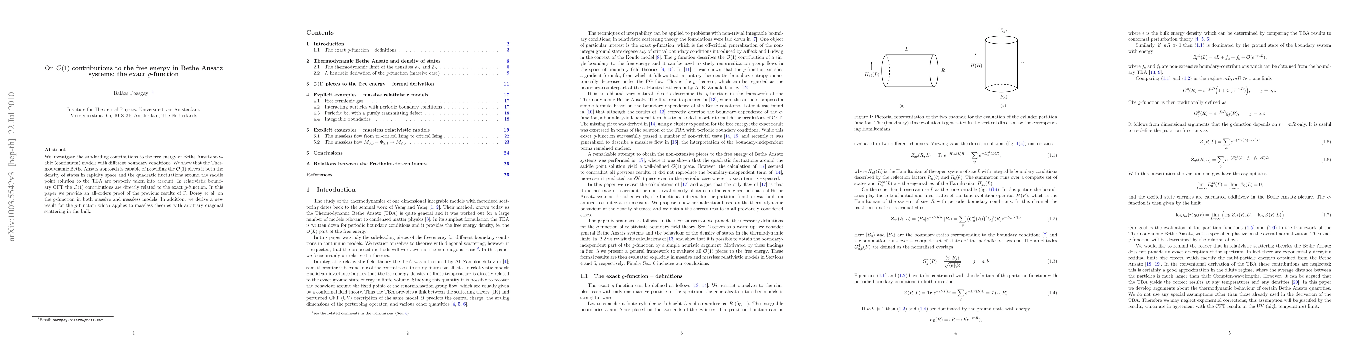 This research demonstrates how precise calculations of free energy in Bethe Ansatz models can include subtle constant terms, known as O(1) contributions, by carefully analyzing the density of states and fluctuations. The findings establish a direct link between these contributions and the exact g-function, providing new insights into boundary effects in quantum field theories.