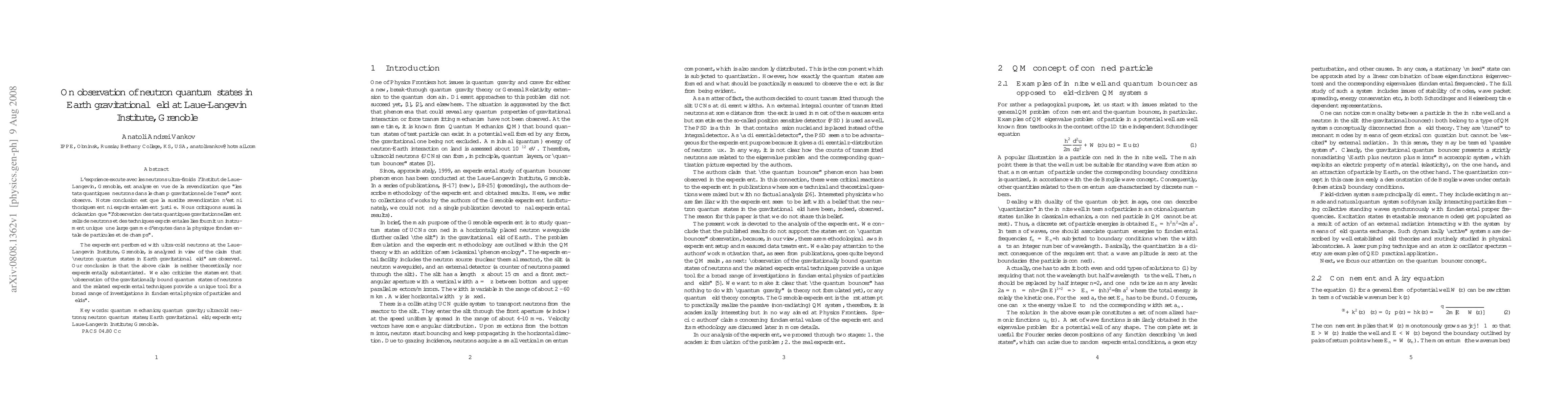 Summary: An experiment at the Laue-Langevin Institute aimed to observe neutron quantum states in Earth's gravitational field, but the analysis concludes that the claim lacks both theoretical and experimental support, and questions the assertion of its unique applicability in fundamental physics.