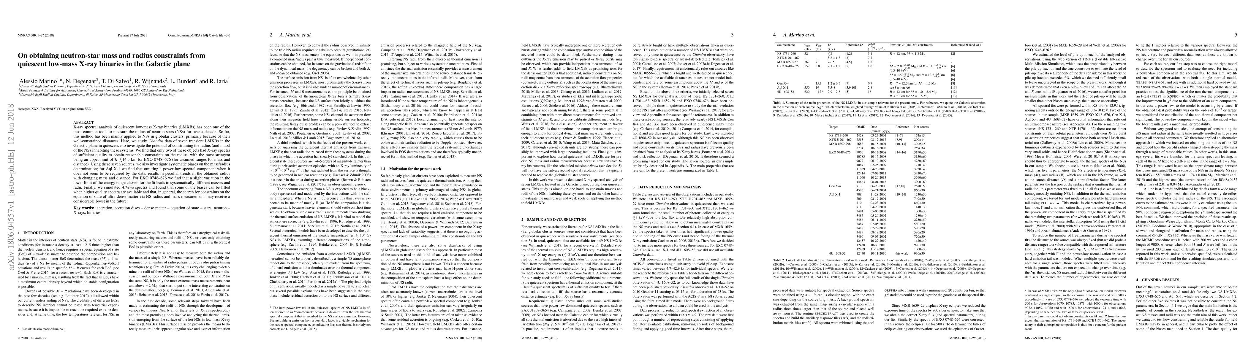 This paper analyzes Chandra data from seven quiescent low-mass X-ray binaries to constrain neutron star radii and masses, finding that only two sources provide sufficient data for reasonable constraints. The study highlights systematic biases affecting mass/radius determinations and suggests that future high-quality data from Athena could significantly improve these measurements.