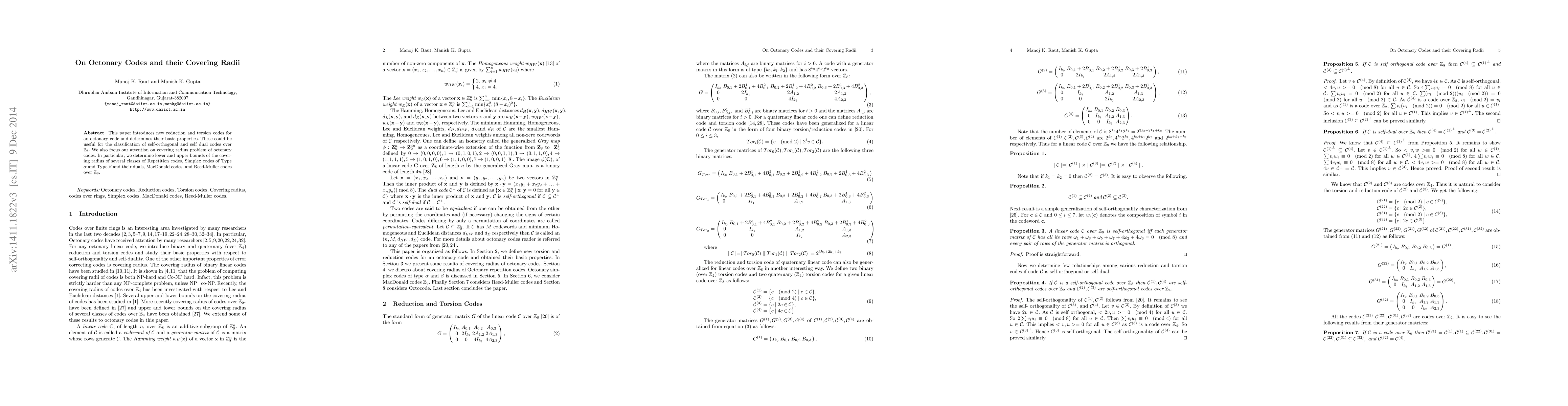 This research explores properties and classifications of octonary codes over the integers modulo 8, focusing on their covering radii. It provides bounds for the covering radii of various code families, aiding in their understanding and potential applications.