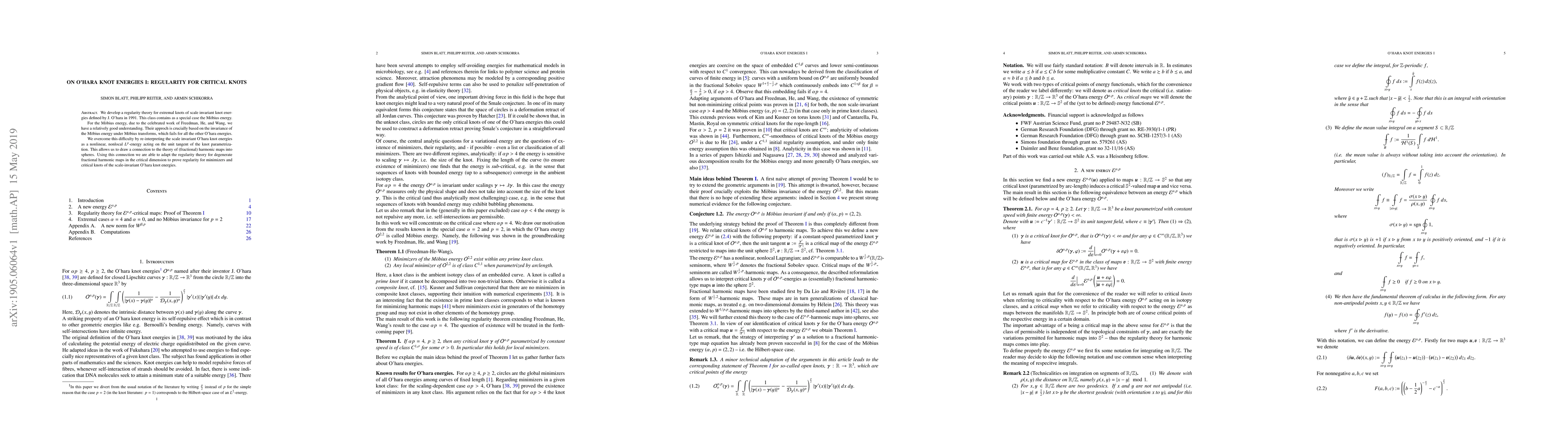 We develop a regularity theory for extremal knots of scale invariant knot energies defined by J. O'hara in 1991. This class contains as a special case the M\"obius energy. For the M\"obius energy, due to the celebrated work of Freedman, He, and Wang, we have a relatively good understanding. Their approch is crucially based on the invariance of the M\"obius energy under M\"obius transforms, which fails for all the other O'hara energies. We overcome this difficulty by re-interpreting the scale invariant O'hara knot energies as a nonlinear, nonlocal $L^p$-energy acting on the unit tangent of the knot parametrization. This allows us to draw a connection to the theory of (fractional) harmonic maps into spheres. Using this connection we are able to adapt the regularity theory for degenerate fractional harmonic maps in the critical dimension to prove regularity for minimizers and critical knots of the scale-invariant O'hara knot energies.