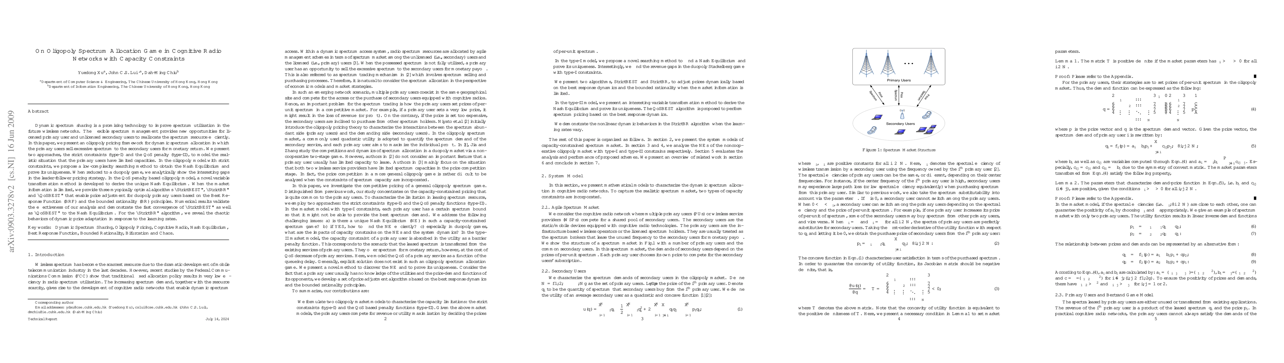 Dynamic spectrum sharing is a promising technology to improve spectrum utilization in the future wireless networks. The flexible spectrum management provides new opportunities for licensed primary user and unlicensed secondary users to reallocate the spectrum resource efficiently. In this paper, we present an oligopoly pricing framework for dynamic spectrum allocation in which the primary users sell excessive spectrum to the secondary users for monetary return. We present two approaches, the strict constraints (type-I) and the QoS penalty (type-II), to model the realistic situation that the primary users have limited capacities. In the oligopoly model with strict constraints, we propose a low-complexity searching method to obtain the Nash Equilibrium and prove its uniqueness. When reduced to a duopoly game, we analytically show the interesting gaps in the leader-follower pricing strategy. In the QoS penalty based oligopoly model, a novel variable transformation method is developed to derive the unique Nash Equilibrium. When the market information is limited, we provide three myopically optimal algorithms "StrictBEST", "StrictBR" and "QoSBEST" that enable price adjustment for duopoly primary users based on the Best Response Function (BRF) and the bounded rationality (BR) principles. Numerical results validate the effectiveness of our analysis and demonstrate the fast convergence of "StrictBEST" as well as "QoSBEST" to the Nash Equilibrium. For the "StrictBR" algorithm, we reveal the chaotic behaviors of dynamic price adaptation in response to the learning rates.