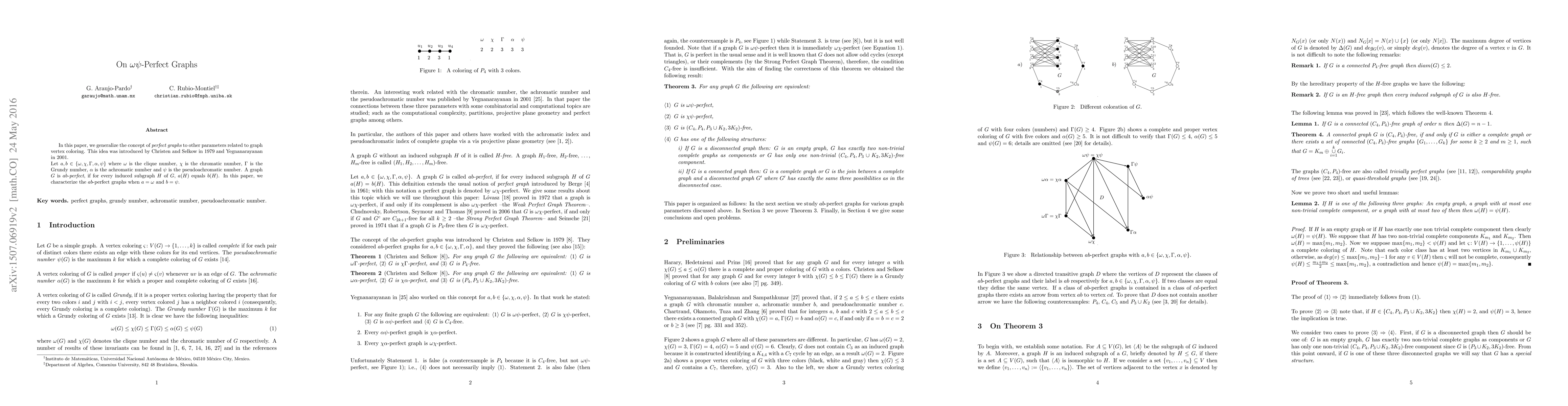 This paper generalizes perfect graphs to various parameters like clique number, chromatic number, and pseudoachromatic number. It characterizes omega-psi-perfect graphs, a type of graph that meets certain coloring criteria for every induced subgraph.