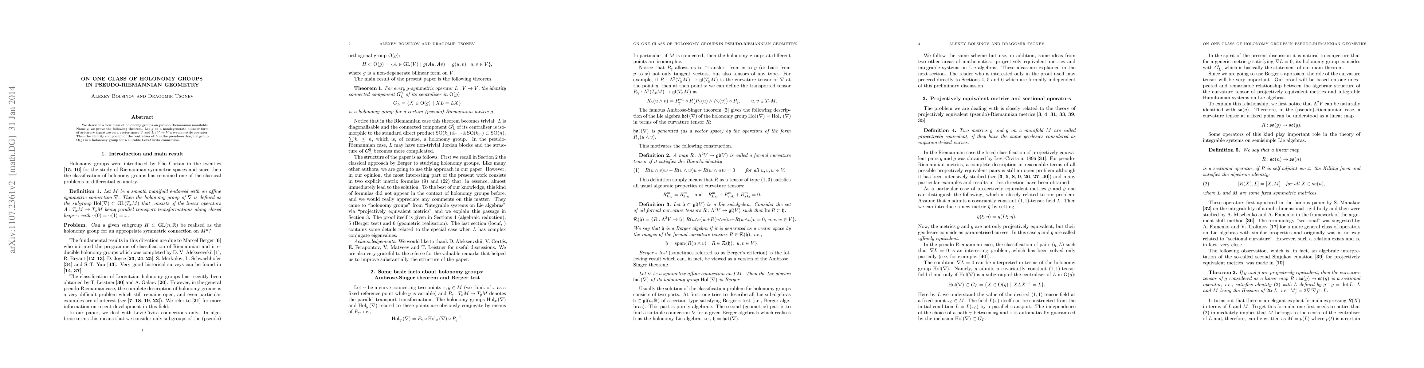 Summary: The paper introduces a novel class of holonomy groups in pseudo-Riemannian geometry, demonstrating that the identity component of the centralizer of a specific symmetric operator in the orthogonal group is a holonomy group associated with a Levi-Civita connection.