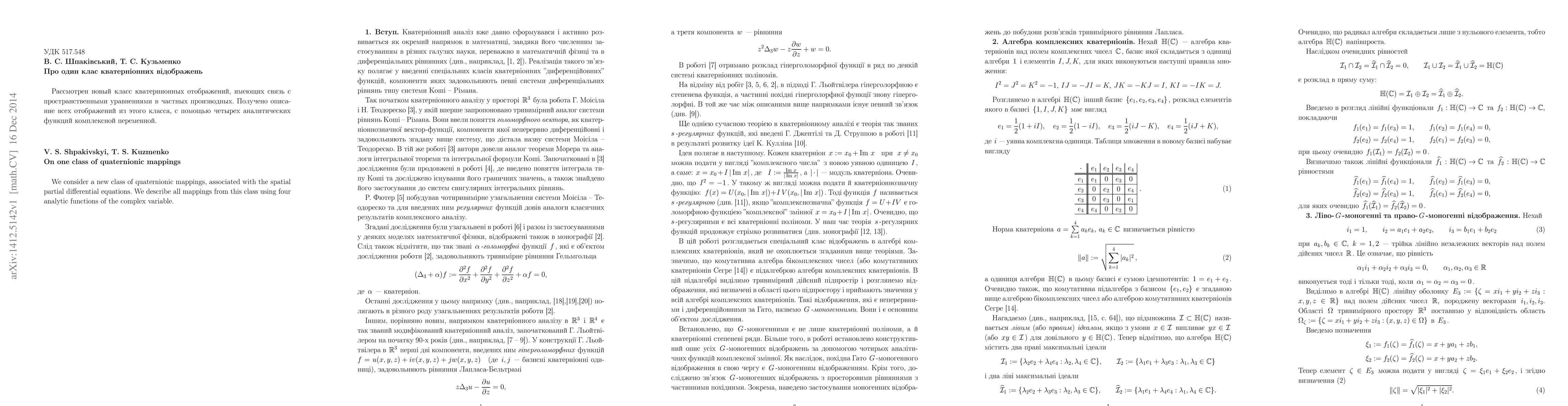 Summary: This paper explores a novel class of quaternionic mappings linked to spatial partial differential equations, characterized by four analytic functions of a complex variable. The study provides a comprehensive description of these mappings.